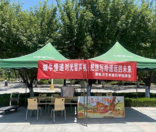 叮!你有一封书信即将送达。建筑与艺术设计学院团委在综合楼西广场举办“蜗牛慢递 时光留声机”活动,意在呼吁同学们写一封致一年后的自己的书信,通过这种形式与未来的自己进行一场时空对话。