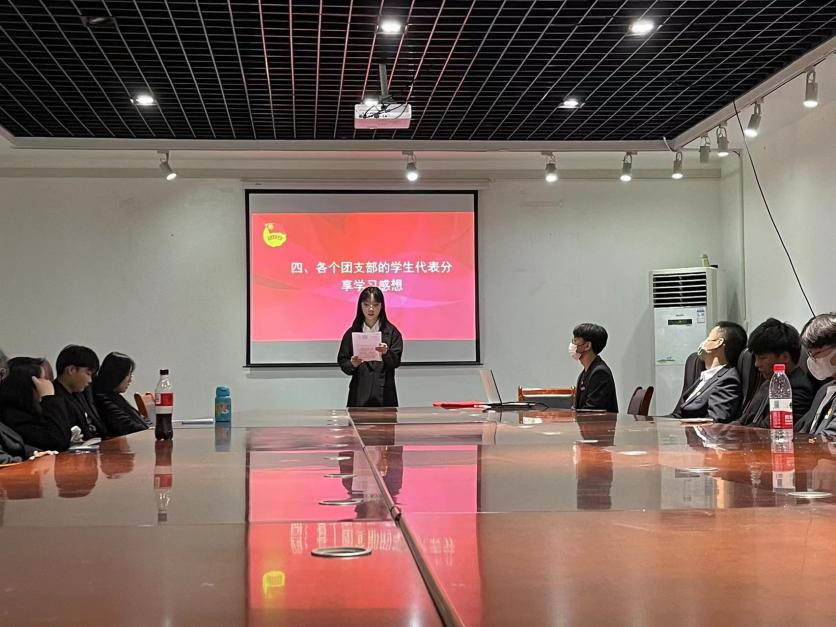其次,参与本次活动的成员认真观看了视频并让各个团支部的学生代表分享学习感想。