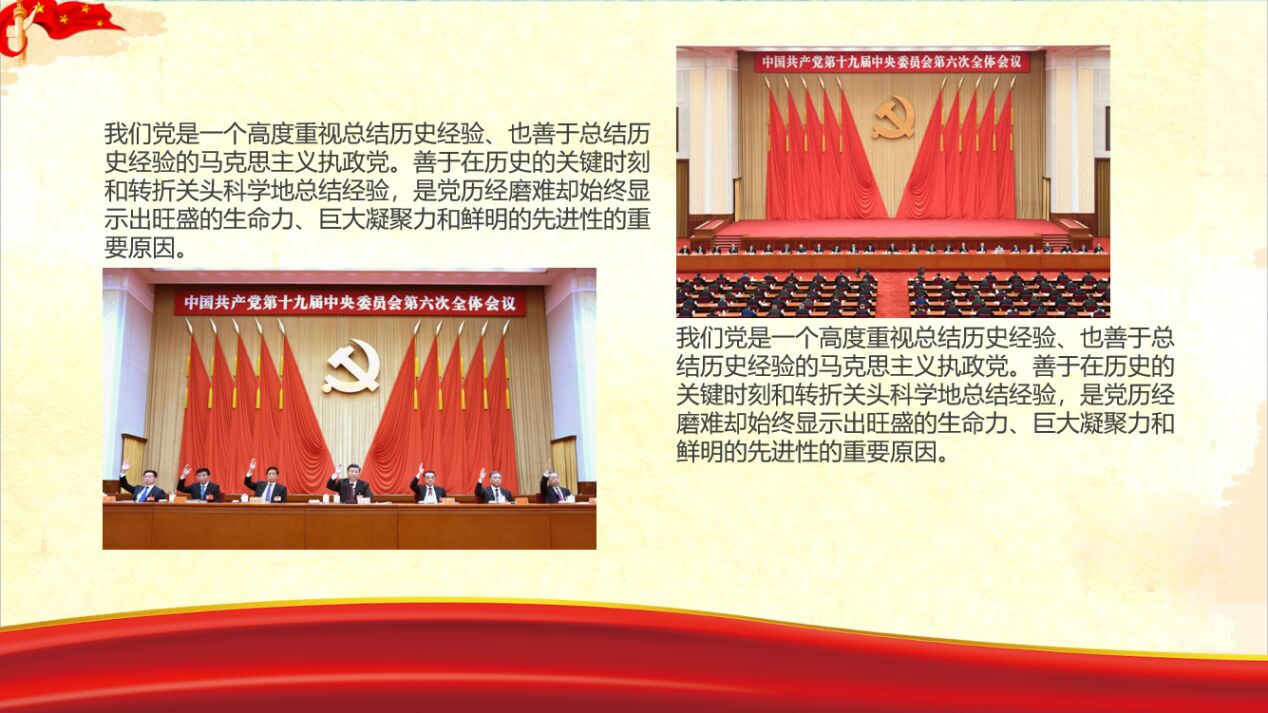 我们党是一个高度重视总结历史经验、善于总结历史经验的马克思主义执政党。作为接班人的我们开展学习活动,学习并领悟会议精神,才能做到统一思想、统一意志、统一行动。同时,我们一定要在深学细悟中补足精神之钙、筑牢信仰之基、在真学真信中加强理论修养、坚定理想信念、积极践行“请党放心,强国有我”的青春誓言,以实际行动诠释责任和担当,努力成为立大志、明大德、成大才、担大任的时代新人。