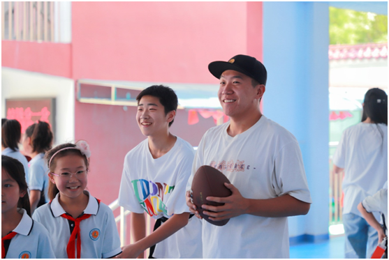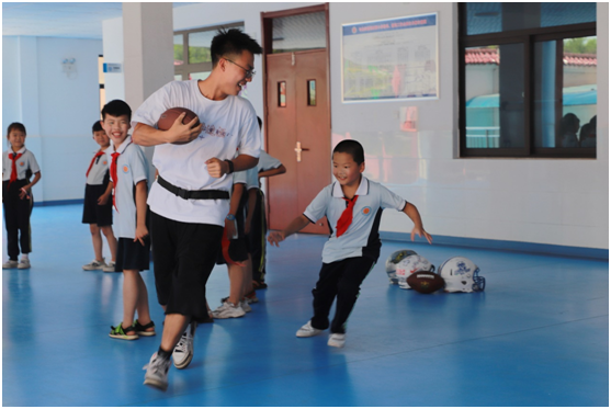 第一站他们来到了位于西安市长安区的何家营小学进行橄榄球支教,为孩子们带来一堂新鲜有趣的体育课。参加此次三下乡活动的队员们虽然来自不同专业,不同年级,但是都有一个共同点:一颗热爱运动、热爱橄榄球的心。在出发之前,他们请来专业橄榄球教练进行指导、训练,经过一个多月的橄榄球教练培训,使他们明白橄榄球不只是一项运动,而是一种文化,一种积极向上的态度,一种即使你摔倒了还能爬起来说一句:“我能行!”的斗志。