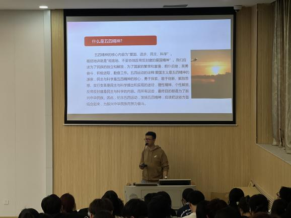 团委书记坚强老师对于五四精神主题团课的内容进行了细致的讲解,分别通过五四精神是什么、作为新时代青年如何去发扬五四精神、怎样去将五四精神发扬以及对于五四精神的自我感想这四个方面进行举例和分享。