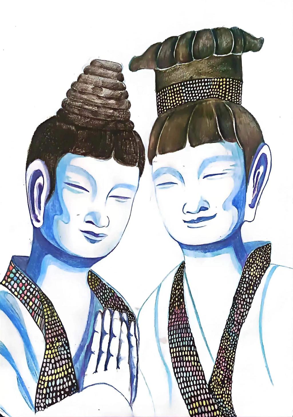 7月15日,同学们参观了麦积山旅游景区的石窟,亲身感受文物的风采,与“文物”对话不仅能丰富人们的精神文化生活,还能让我们感受到弦歌不辍的传承,及其思接千载的心绪,触摸博大精深的文明,从而更加坚定文化自信。同学们通过绘画来展现文物。