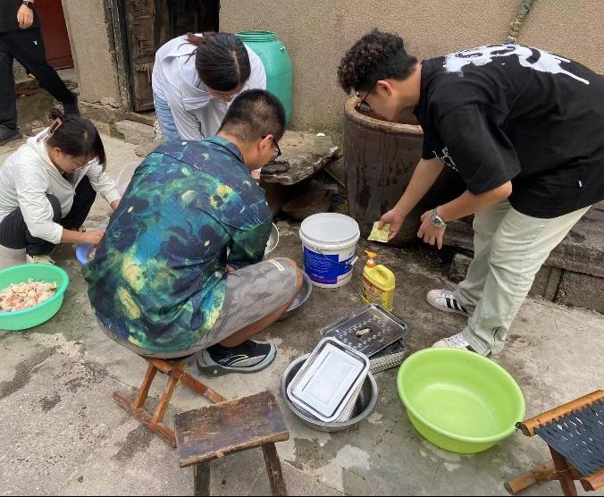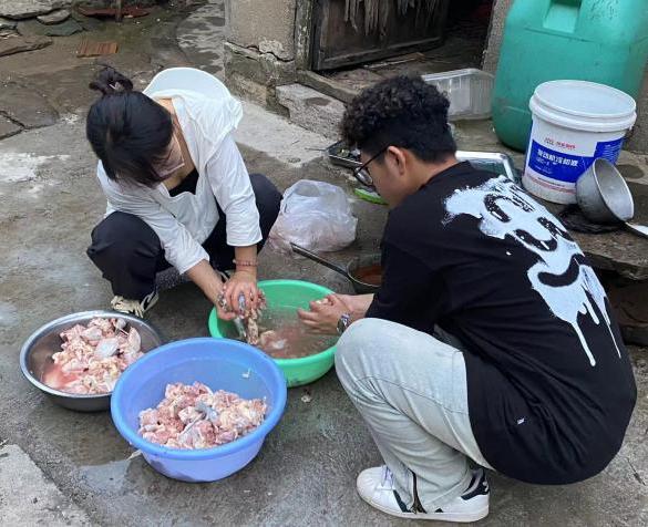 到达了老人家中,我们开始忙碌起来,切菜、洗菜、煮饭、炒菜……一直忙到晚上才把饭菜做好。
