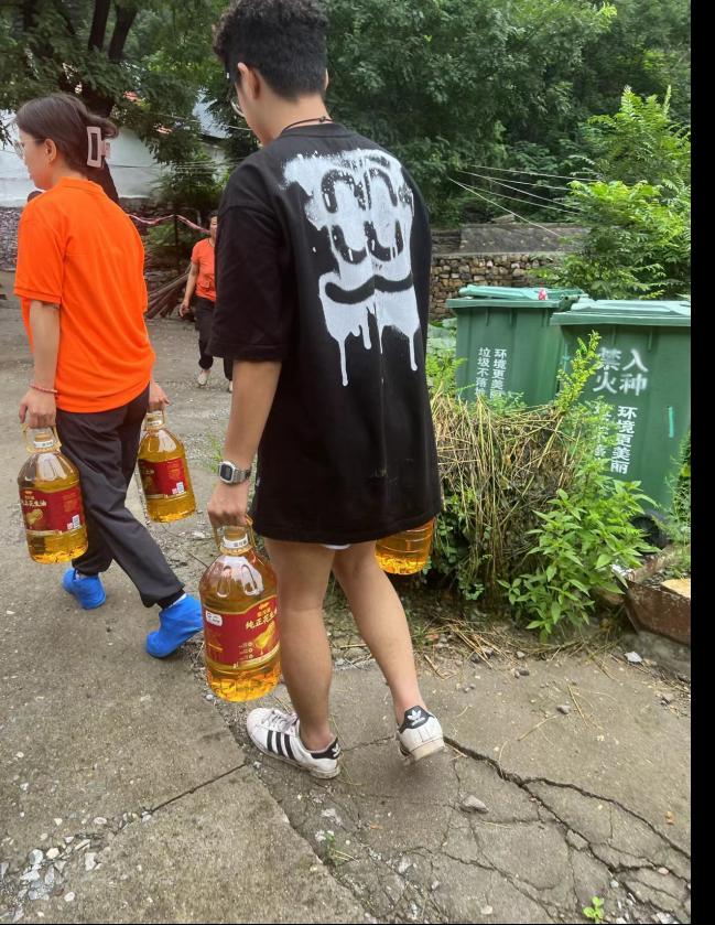 当天下午我们坐车抵达了青州市庙子镇,因为山路十分狭窄,大家只能徒步上山,到达山顶独居老人们的家中。在一路上,我们了解到了当地地医疗条件也是比较艰苦,山上的老人们大多都已经超过七十岁,十分陡峭崎岖的山路让老人们无法下山去买生活必备品以及食材,只能靠儿女们或志愿者们上山带过去为了为老人们做一顿可口的饭菜,我们中午先去了超市购买了新鲜的蔬菜和肉类带到山上。