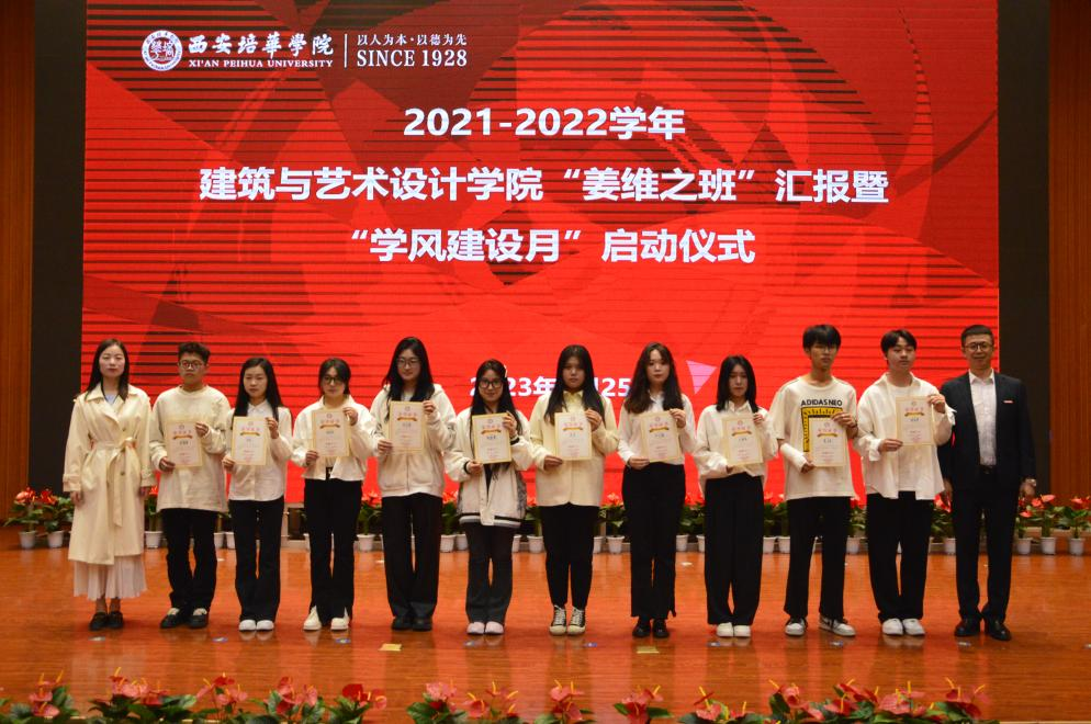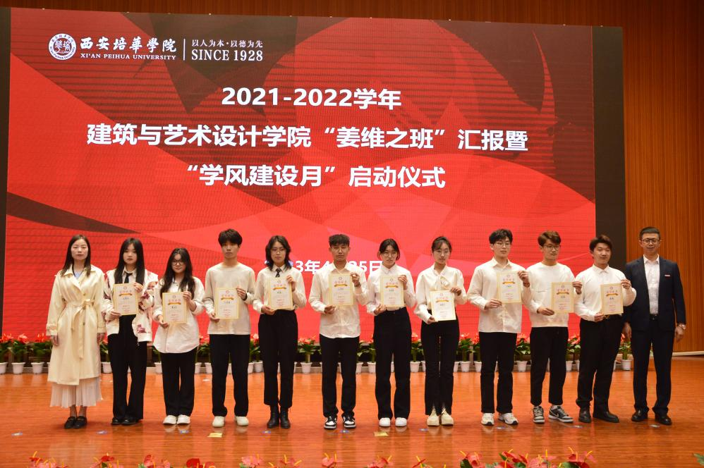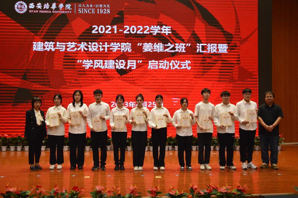 为进一步落实立德树人根本任务,持续推进我院“姜维之班”创建工作,引导各班形成爱党、爱国、爱校、学风浓厚的良好班级氛围,建筑与艺术设计学院于4月25日下午19点在维之图书馆报告厅举行2021-2022学年“姜维之班”创建成果汇报暨“学风建设月”启动仪式。建筑与艺术设计学院常务副院长徐莹,建筑与艺术设计学院党委书记兼行政副院长王飞,建筑与艺术设计学院党委副书记南斌红,建筑与艺术设计学院院长助理刘清颖,建筑与艺术设计学院工程造价系主任杨锦,建筑与艺术设计学院团委书记坚强,建筑与艺术设计学院学生干事崔菲、黄鑫,工程造价专业教师宋胜男以及全体辅导员和学业导师代表出席会议。仪式由吕文静、刘子义主持。