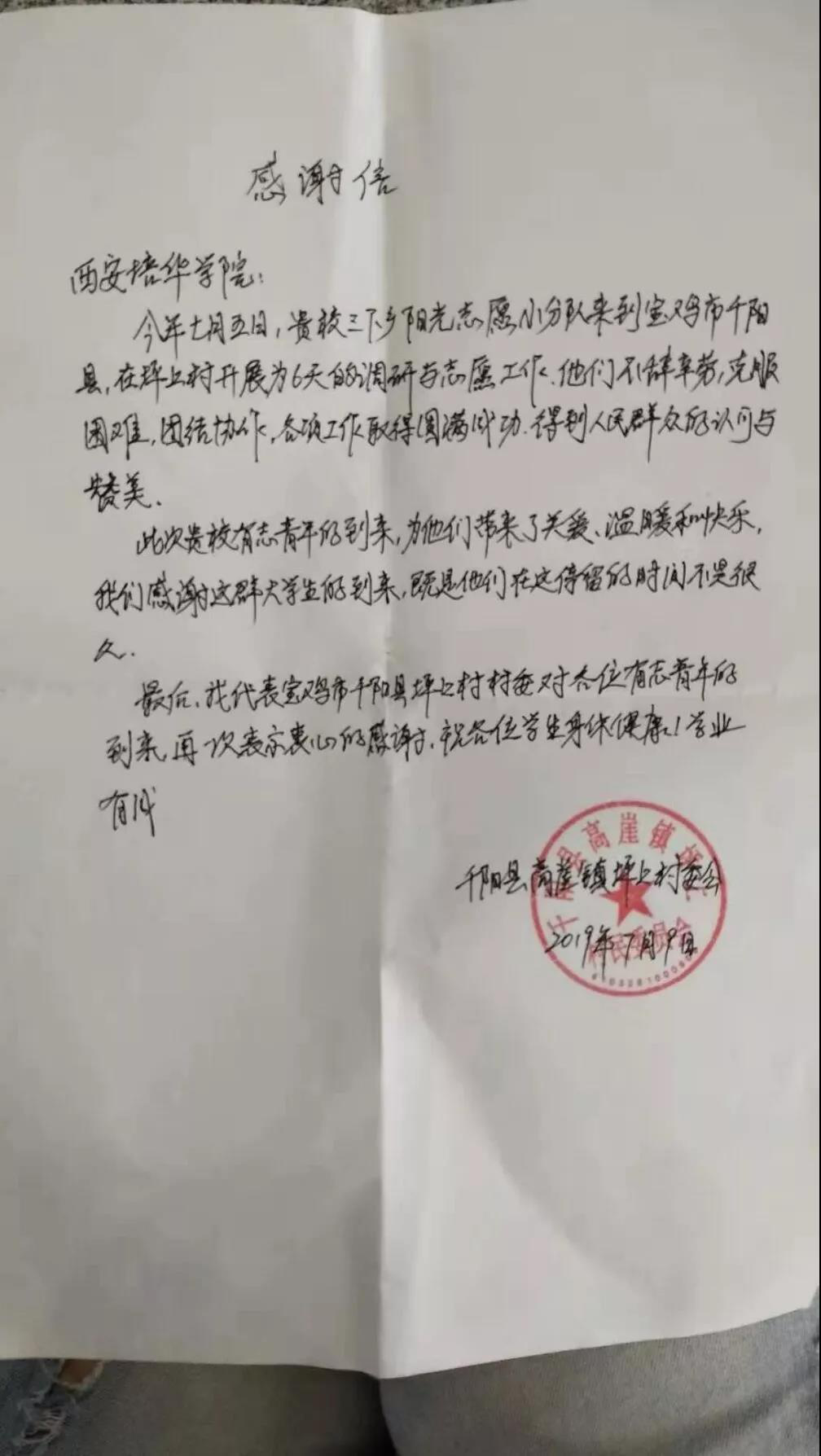 村民们对此次活动表示感谢,并且欢迎我们西安培华学院下次继续来到这里实践。村民们热情地送我们到汽车站,路上和我们分享了一些习近平主席以前在这里下乡的事迹,“现在的下乡已经轻松多了,当时都在高崖乡生产队干活,都是村长带着去咧”。这里的所有人每次一提到下乡,脸上都挂着光荣的笑容,因为习近平主席在我们这里下过乡。