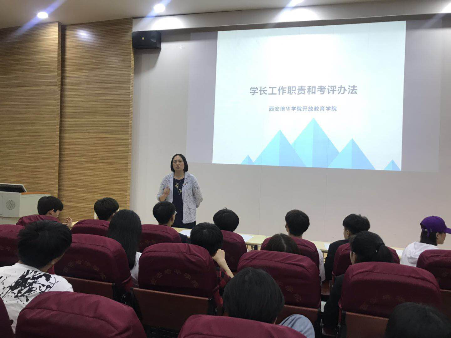 大会依始,何丽副院长对学长工作职责、学院概况、班级建设和寝室管理等工作进行了详细的讲解和安排,发布了学长考核制度,并提出了严格要求,希望各位学长要及时掌握新生需求和心理动态,率先垂范,为新生们做好榜样。