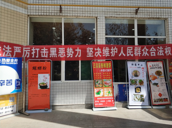 为加强扫黑除恶宣传效果,我院在宣传栏上张贴扫黑除恶标语及扫黑除恶宣传画,在学校食堂外悬挂扫黑除恶条幅,营造了浓厚的宣传氛围,大大提高了师生对于扫黑除恶专项斗争相关内容的知晓率。