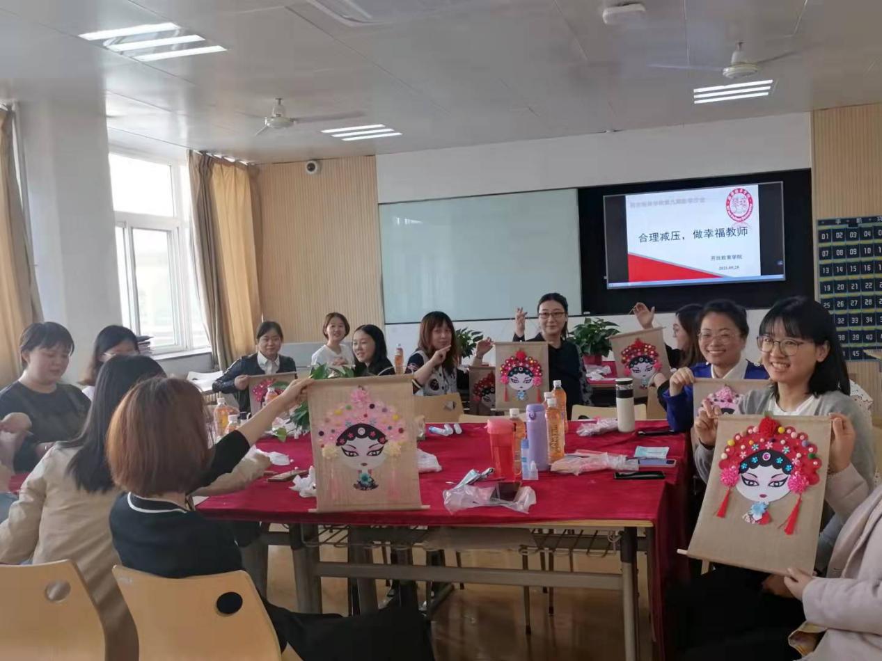 在现场DIY减压管理环节,老师们积极选择材料和工具,纷纷动手、踊跃参与到作品的制作中,一张张极具国风美感的人脸跃然纸上,老师们通过这种方式释放着自己平日工作中的压力,用更好的状态投入到教育工作中,进一步提高育人成效和教学效果。