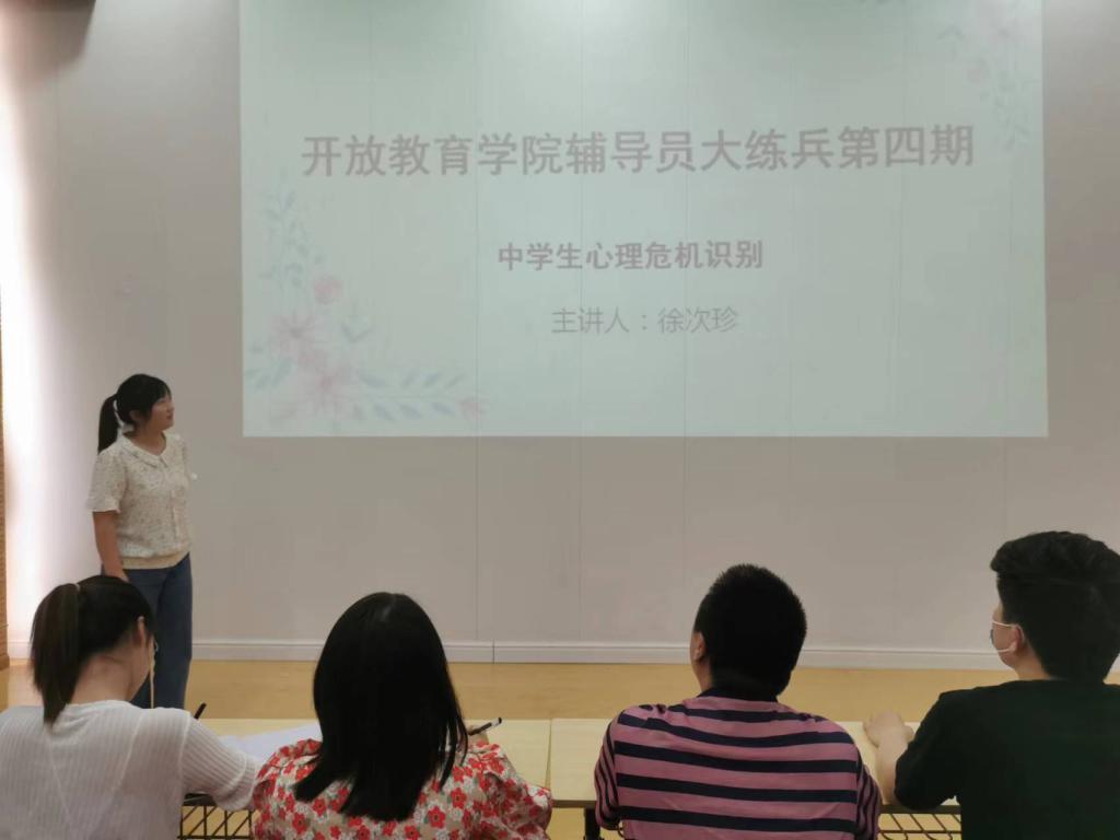 为切实保障学生安全,杜绝因心理问题导致的校园安全事故的发生,切实掌握开展学生心理健康教育的正确方法,了解心理危机干预的注意事项,营造安全稳定的校园环境,我院开展了辅导员练兵第四期主题培训会,本期由辅导员徐次珍老师围绕“学生心理危机干预”开讲。