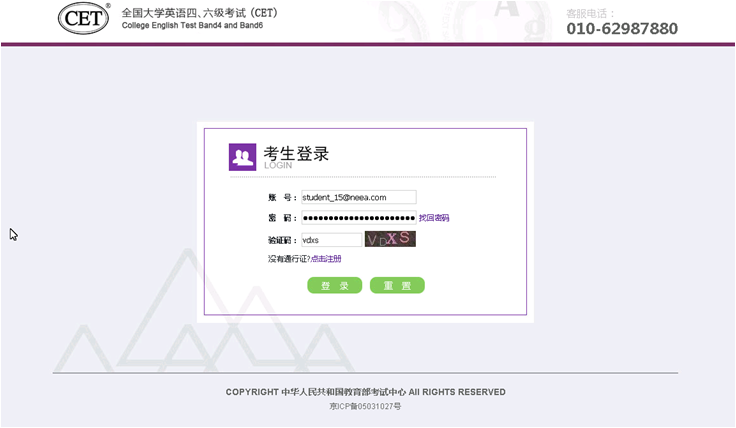 5. CET考试前的所有操作都在本系统进行,包括报名、缴费、打印准考证。