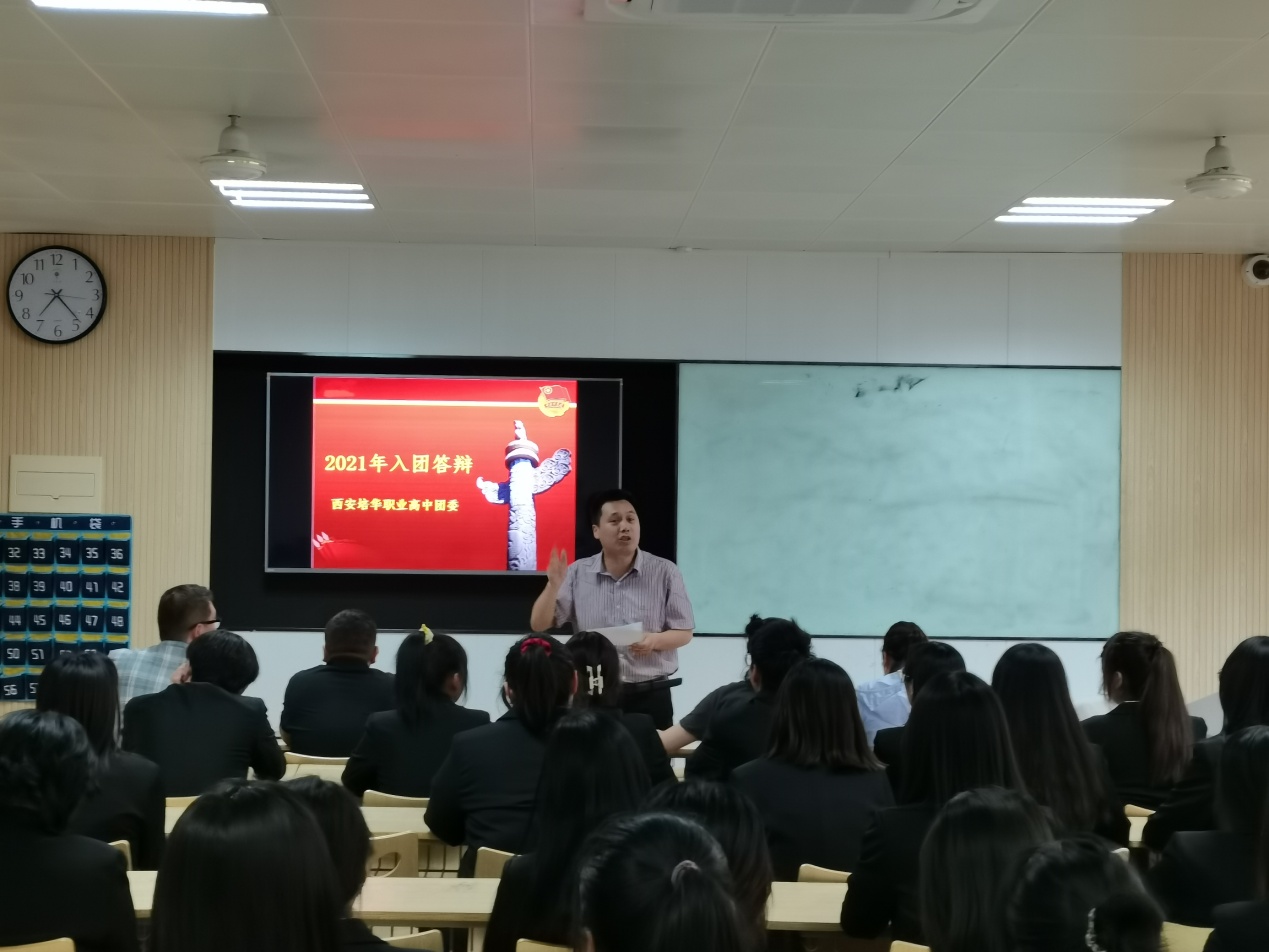 团委书记蔡国强宣读了《西安培华职业高中团委2021年发展团员工作实施办法》及《西安培华职业高中2021年发展团员答辩实施细则》,希望同学们认真准备、沉着应对,在此次活动中展现良好的精神风貌,预祝各位同学取得优异的成绩,早日成为光荣的共青团员。