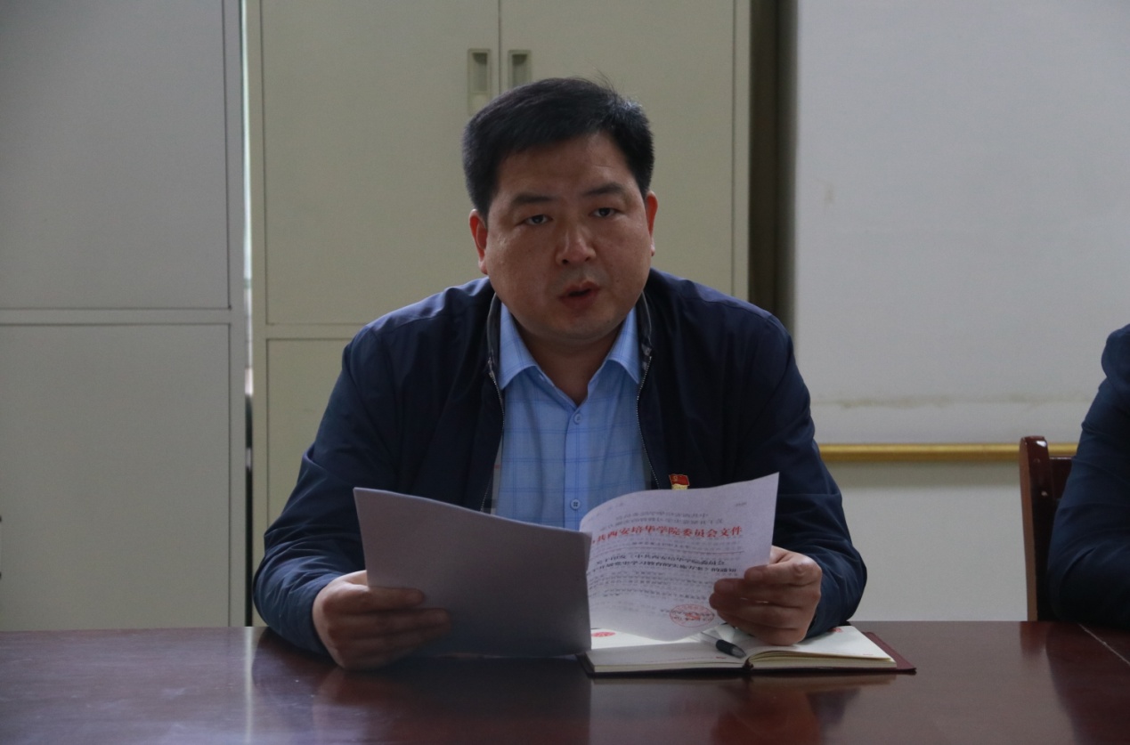 副校长席小武宣读《中共西安培华学院委员会党史学习教育实施方案》