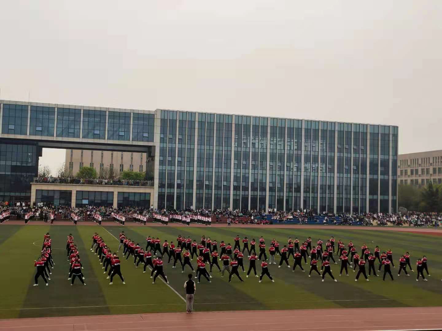本次运动会组建了150人的军体拳方队。他们的队列整齐,他们行动一致,他们出拳虎虎生威,他们踢腿凌厉有力,他们斗志昂扬,他们势如霹雳。他们是一道亮丽的风景,他们也是一弯燃烧的霓虹!他们动作整齐、沉着有力,展示了学生的青春风采。听,他们“杀”声响亮、威震四方,展现了开放学子的勃勃生机。