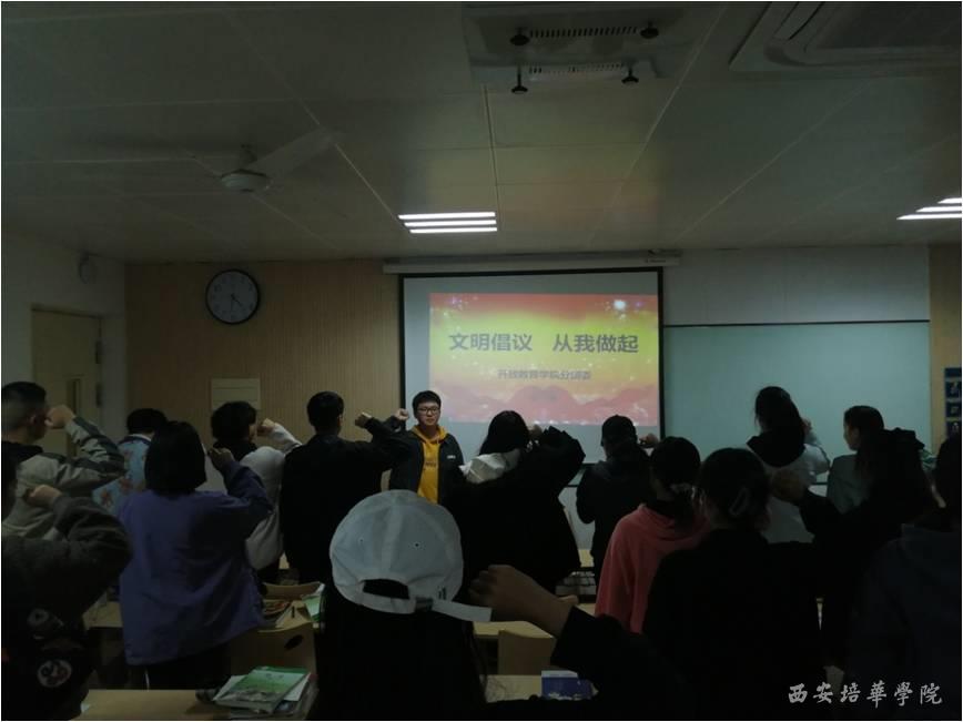 我校在团学干部例会上发出文明倡议,号召广大团员发挥模范带头作用,用自己的身体力行影响身边的同学形成良好文明的行为习惯,通过大家的共同努力营造文明的校园环境。