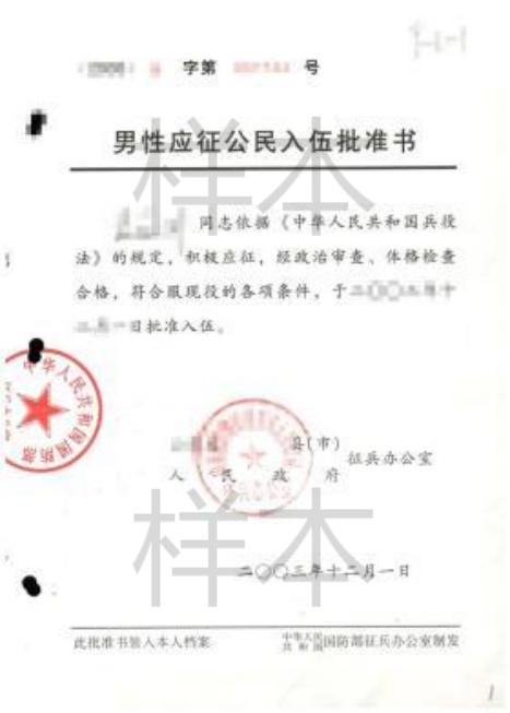 除上述第一至第六项对应类别应提交的材料外,还须上传本人《入伍批准书》和《退出现役证》。