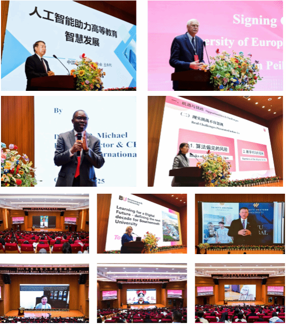 联合国学术影响力主席Ramu Damodaran教授、中国教育国际交流协会副会长王永利先生,德国欧洲应用科技大学校长Maurits Van Rooijen教授,中华女子学院校长刘利群教授,罗马尼亚多瑙国际大学校长Steve O. Michael教授,山东女子学院校长李光红教授,英国伯恩茅斯大学校长Alison Honour教授,湖南女子学院校长何旭娟教授,英国西英格兰大学副校长Jo Midgley教授,加拿大西三一大学副校长、全球创新与学术合作副教务长Phil Laird教授等10位中外嘉宾,围绕“女性在学术界的领导角色”“人工智能助力高等教育智慧发展”“消弭性别数字鸿沟与女性能力建设”“追求高等教育性别平等”“对数字化未来的展望”“女大学生创新创业教育变革的探索与思考”等主题发表主旨报告。