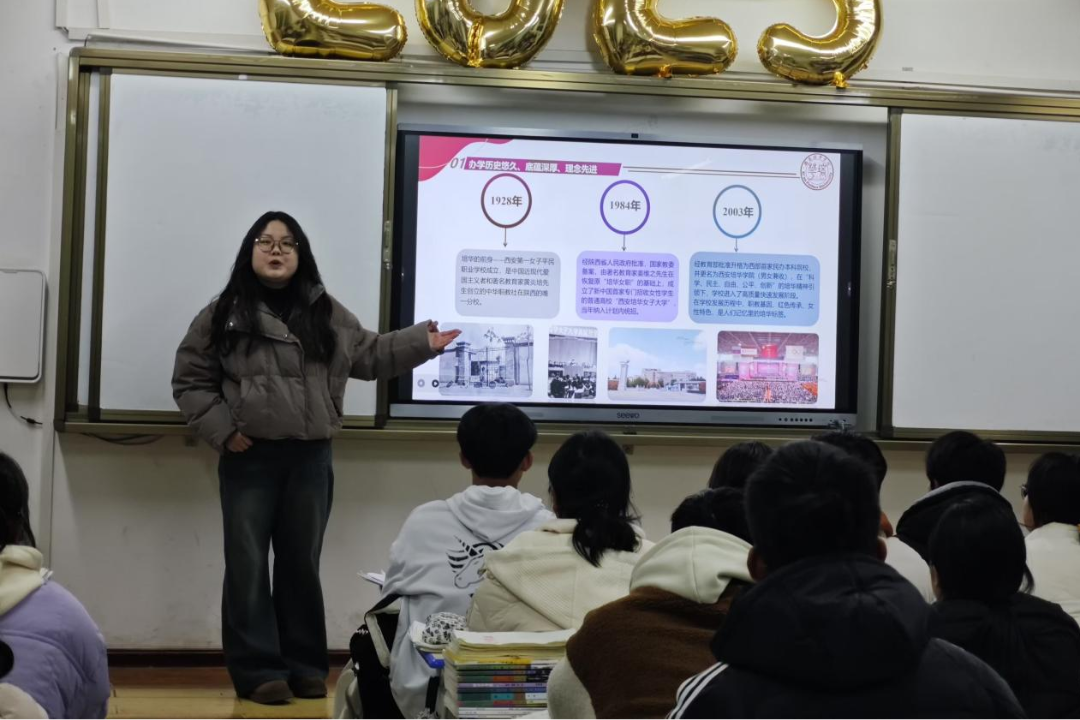 “从容应”队的队员们借助PPT,从校史、师资、专业、校园环境等维度,向学弟学妹们全面展示西安培华学院的魅力,涵盖美丽校园风光、多彩校园生活及近年学校所获荣誉。这一张张精美的图片勾勒出了他们对未来大学生活的憧憬。