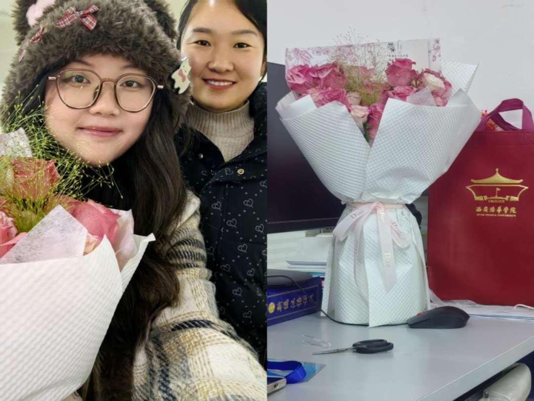 阔别校园许久,叶一曼同学和吴昊同学带着鲜花来看望老师。叶一曼同学与老师分享自己的大学生活,讲述自己作为班长是如何管理班级工作,参与的社团活动和校组织,以及这学期的成长收获,老师对她的收获表示祝贺。随后吴昊同学热情地邀请老师前往培华学院参观。
