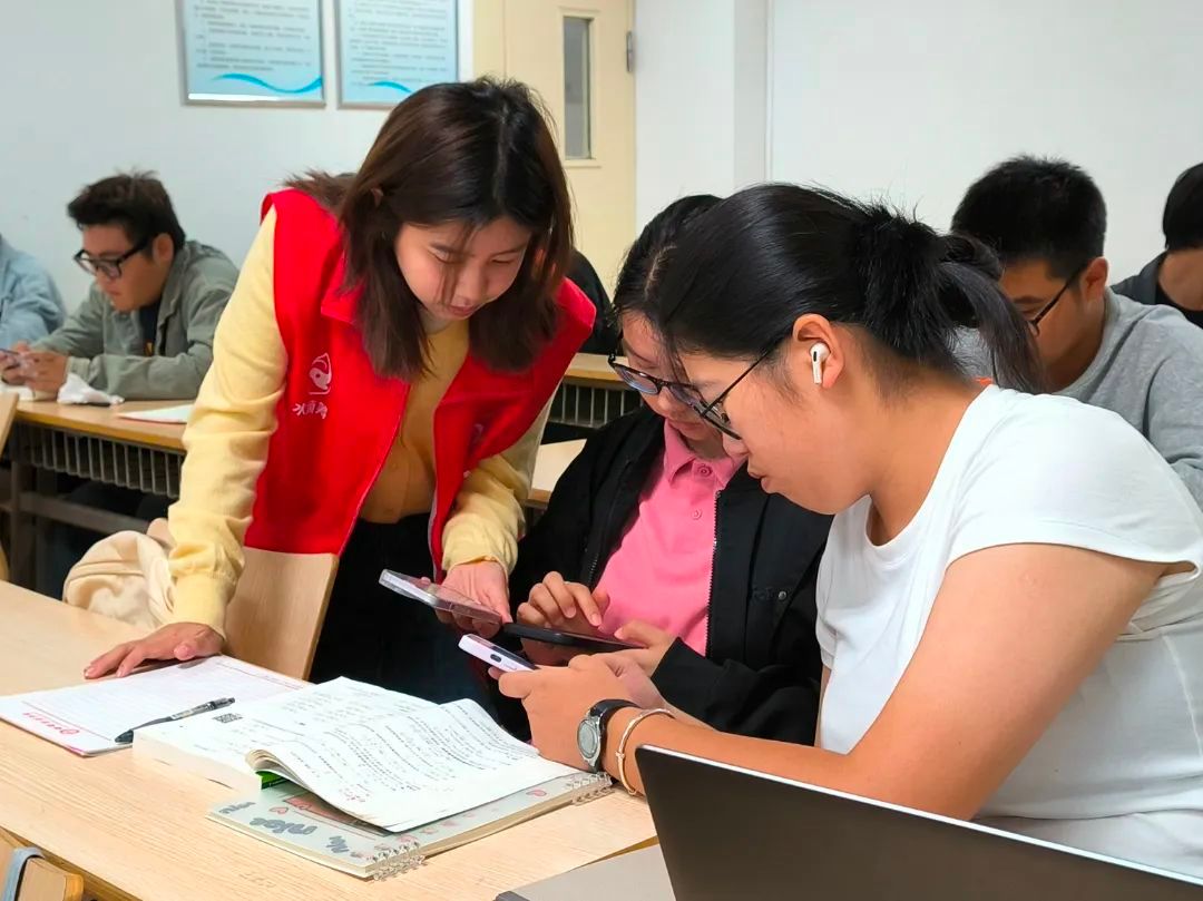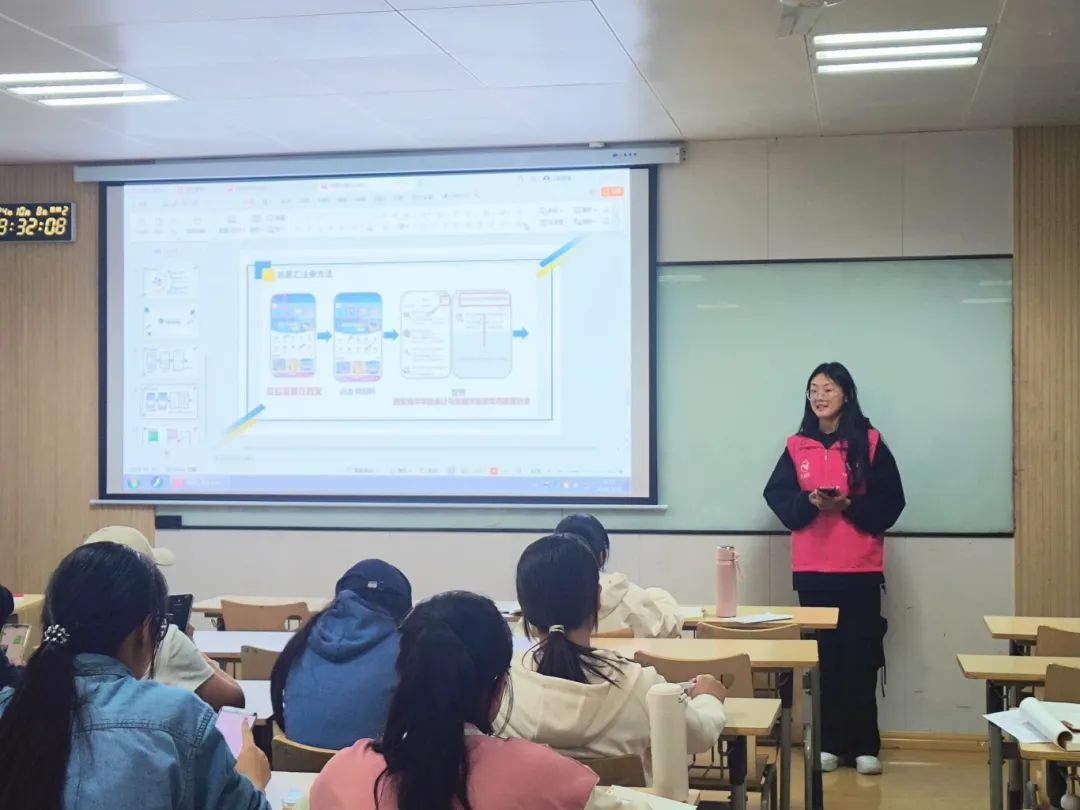活动现场,气氛热烈且充满活力。会计与金融学院青年志愿者协会干部们详细介绍了“志愿汇”的注册流程及使用方法。“志愿汇”作为一款集志愿服务活动发布、志愿者招募、志愿服务时长记录等功能于一体的综合性平台,为大一新生志愿者们提供了便捷高效的服务渠道。