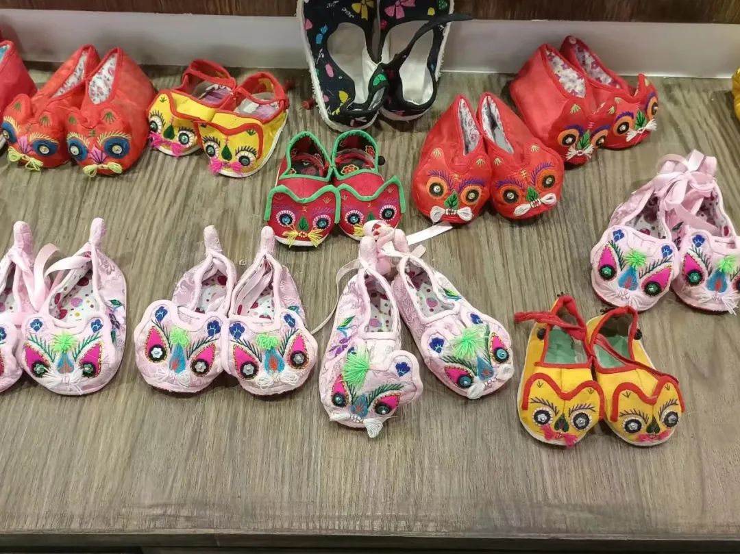 其中虎头鞋是专为蹒跚学步的小孩所穿,为使自己的小宝宝健康成长,以借虎之阳气和威武,达到保佑和驱邪的目的,孩子们穿上栩栩如生的虎头鞋,那虎头虎脑、虎虎生威的样子,看上去就非常可爱。既有祝福美好的精神信仰又有美观的现实意义,虎头鞋是我们老祖宗留下的宝贵财富。此外在虎头鞋的中央绣有鱼,寓意年年有余事事顺遂。