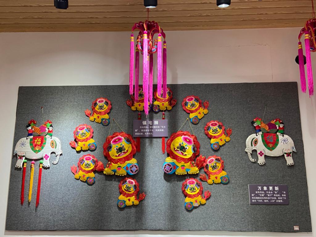 李慧莲女士介绍,中间为佛教和道教相结合起来,两侧为十二生肖,中间的各个小图人物为各个传说寓言故事譬如孟姜女哭长城。