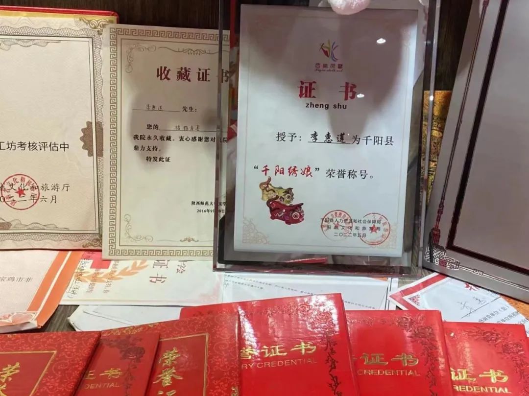 李慧莲女士向我们介绍刺绣非遗传承在千阳县绣娘的努力下获得的各项荣誉。