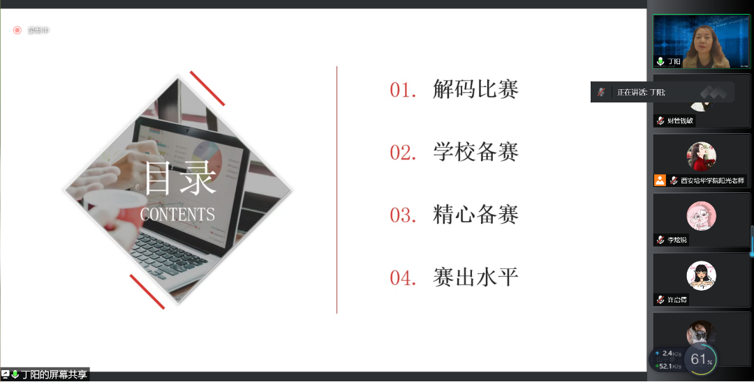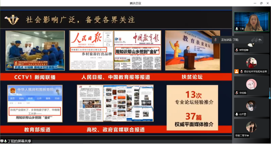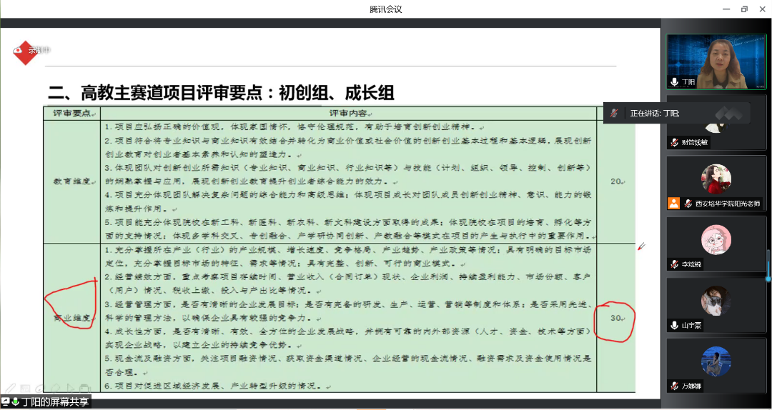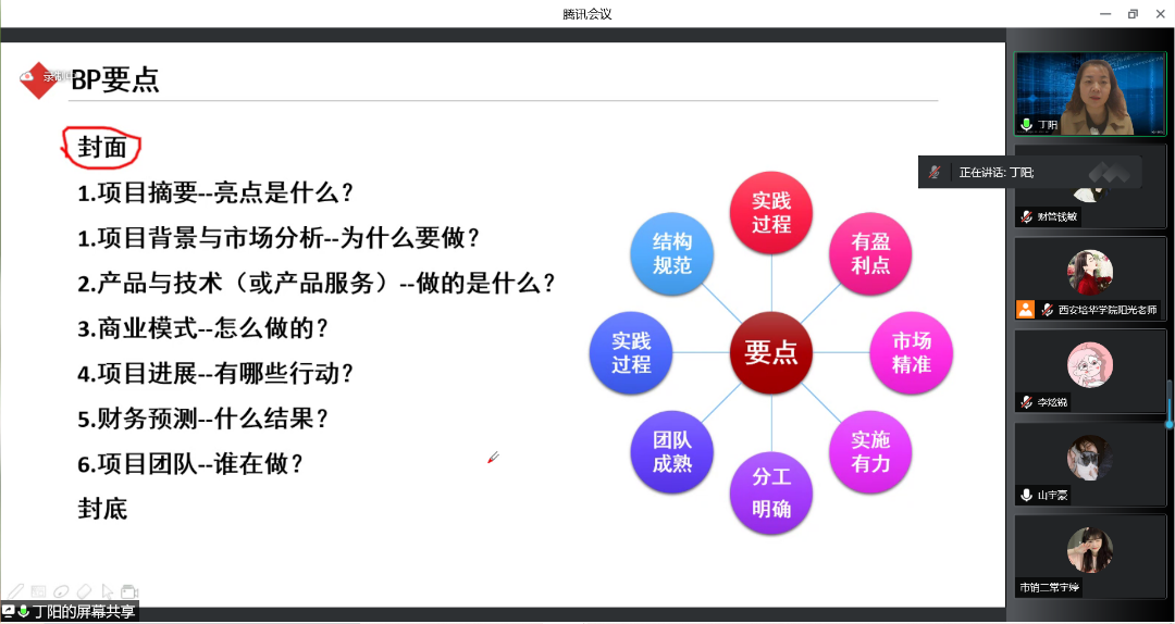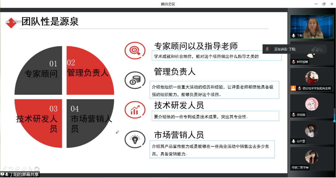 为了鼓励更多学生参与“互联网+”大赛,为已经参加“互联网+”大赛的同学提供建议与指导,提高西安培华学院会计与金融学院人才培养能力,培养一大批有理想有能力的学生,促进我院学生创新创业。西安培华学院会计与金融学院创新创业教研室于2022年5月13日14:15开展了以“互联网+大赛那些事”为题的线上会议。会议的主讲人是丁阳副教授,与会人员有江凤香老师以及会计与金融学院部分学生。