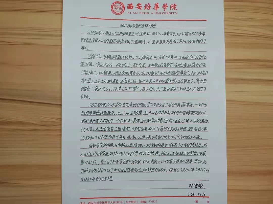 其次以下是一些同学针对此次观展写出的心得体会表达出自己对于该历史真切的情感: