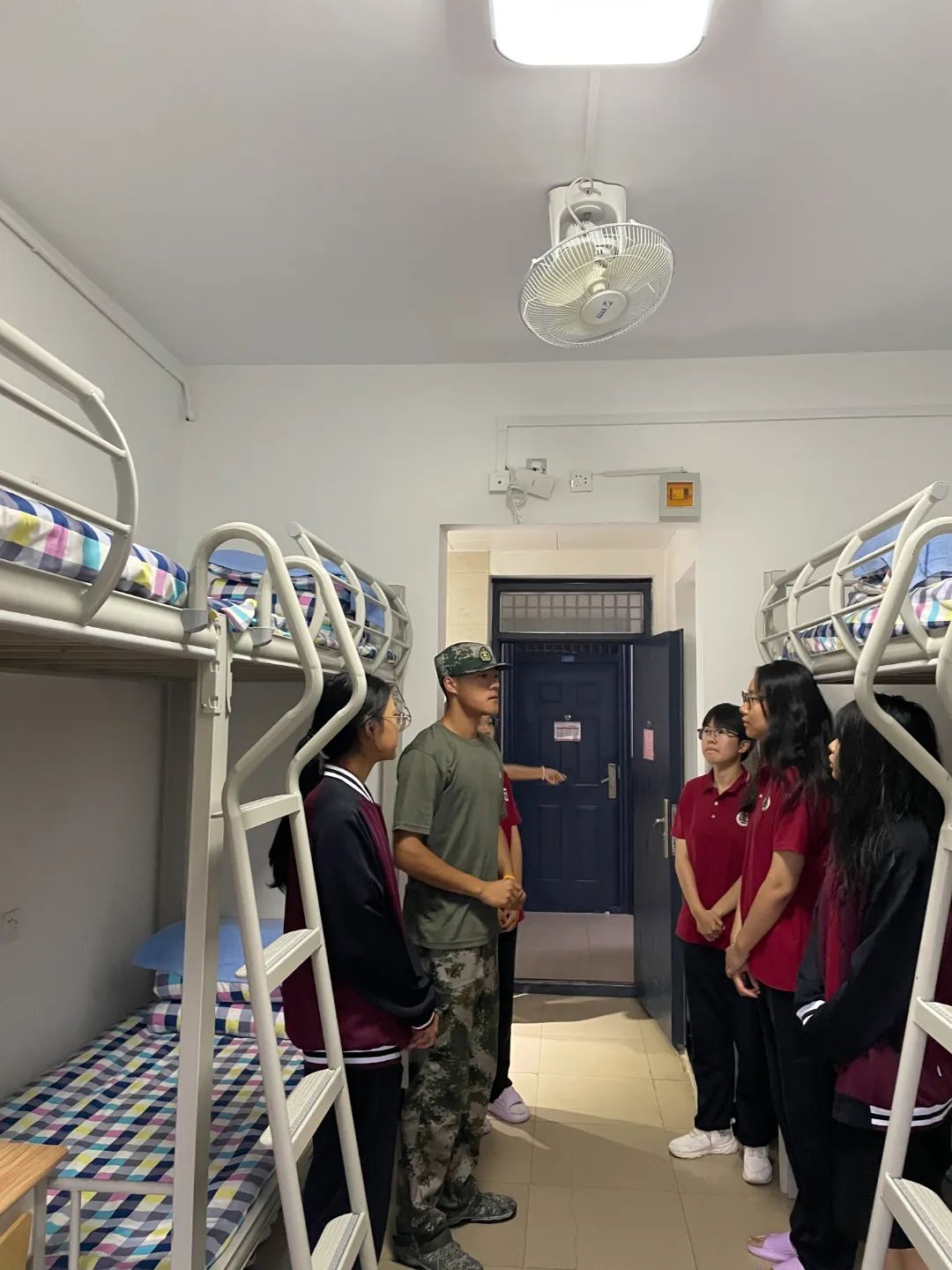 在查寝过程中,教官和新生辅导员深入学生宿舍,认真检查每位学生的被子叠放是否整齐、衣物摆放是否有序,以及个人卫生是否得到保障。对床铺整理、桌面归置、墙面死角等进行了全方面检查。教官和新生辅导员对宿舍干净整洁和物品摆放整齐有序的宿舍提出了表扬,同时也对有问题的宿舍提出整改意见,并要求重新学习内务整理方法和技巧,再次认真对宿舍进行清扫和整理。