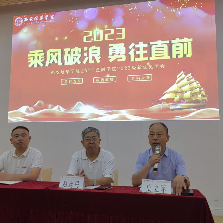2023年9月2日上午,西安培华学院会计与金融学院2023级新生见面会在博远楼J201、J202顺利开展。会计与金融学院院长赵选民、党委书记兼行政副院长史立军、党委副书记刘斌、会计专业教师赵小军以及2023级新生代表参与此次见面会。本次见面会由刘斌书记主持。