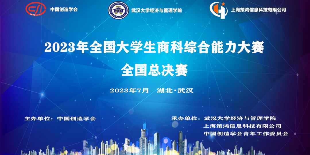 2023年7月15日至16日由中国创造学会主办,武汉大学经济与管理学院、上海策鸿信息科技有限公司、中国创造学会青年工作委员会承办的2023年全国大学生商科综合能力大赛全国总决赛圆满落幕.
