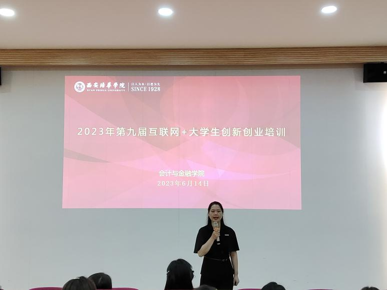 为了提升学生创新创业能力和未来竞争优势,培养新时代创新创业型人才,同时进一步宣传创新创业理念,激发大学生创新创业意识,培养大学生创新创业能力,营造良好的学院创新创业文化氛围;西安培华学院会计与金融学院于2023年6月14日14:00至16;00在博远楼J201举行了“互联网+”大学生创新创业项目选择与方法指导讲座;本次讲座由江凤香老师主持。