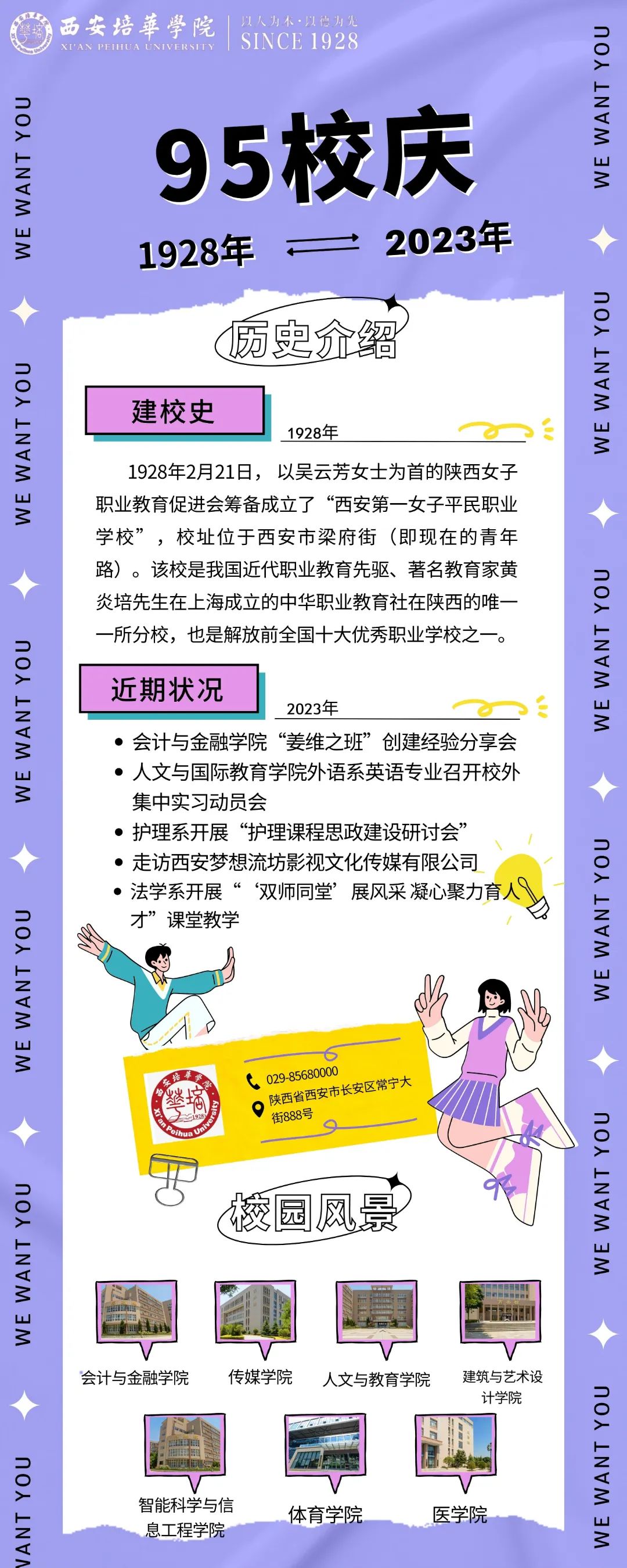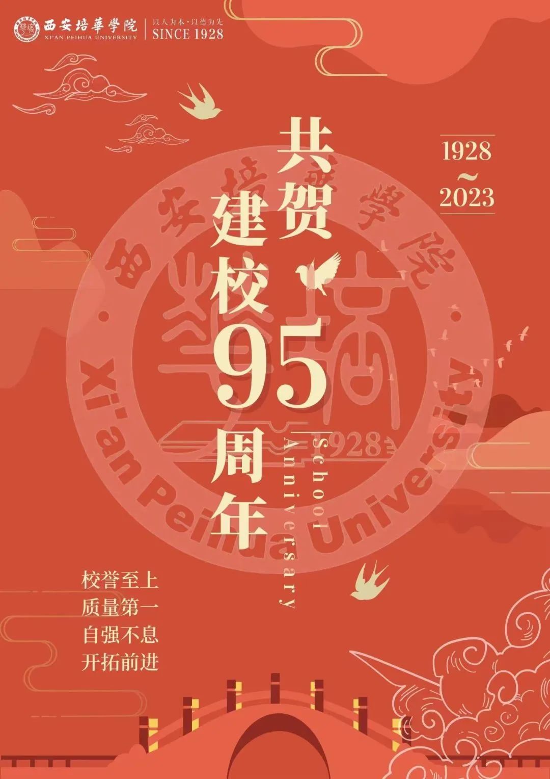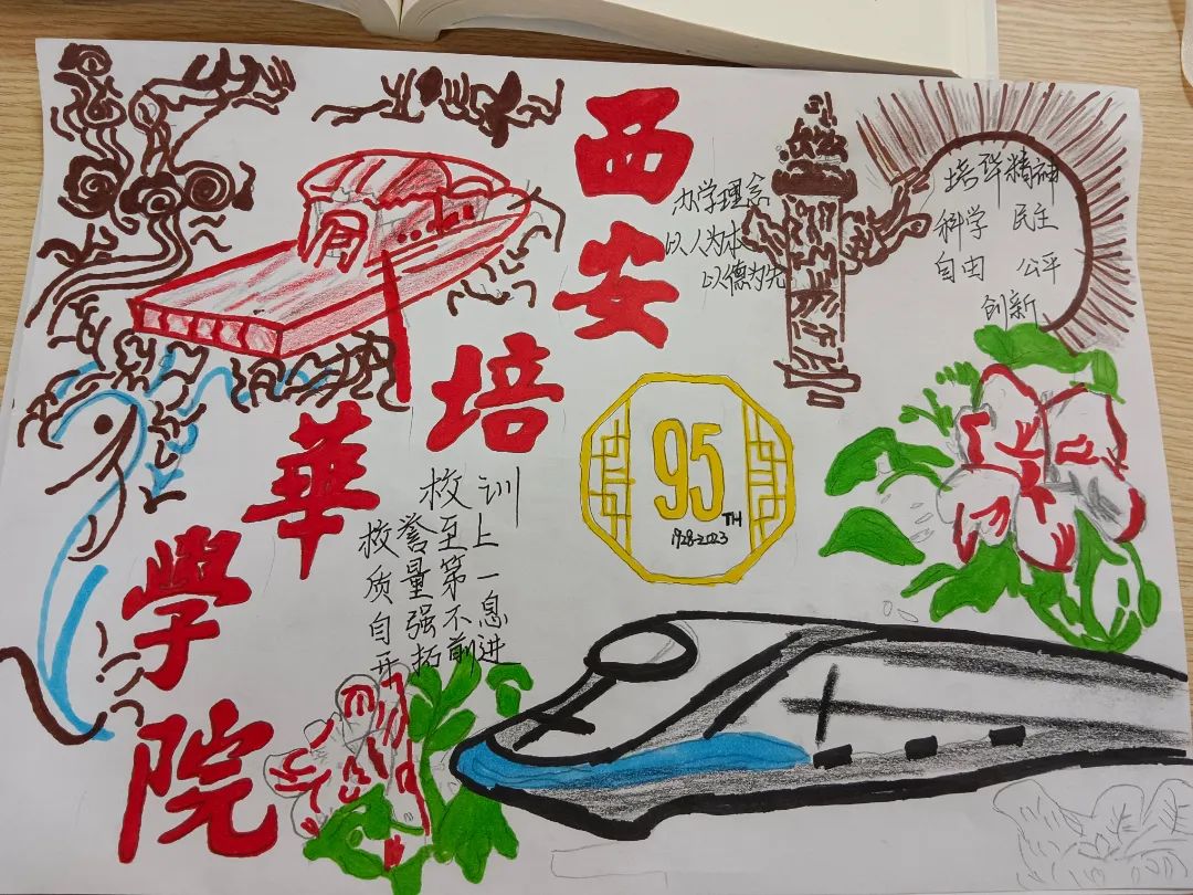 在海报设计中,我们看到了培华的精神内涵以及发展历程,新颖的设计能够第一时间吸引同学们的注意,丰富的内含激励着同学们奋发向上,展示了喜迎校庆95周年华诞的热情。