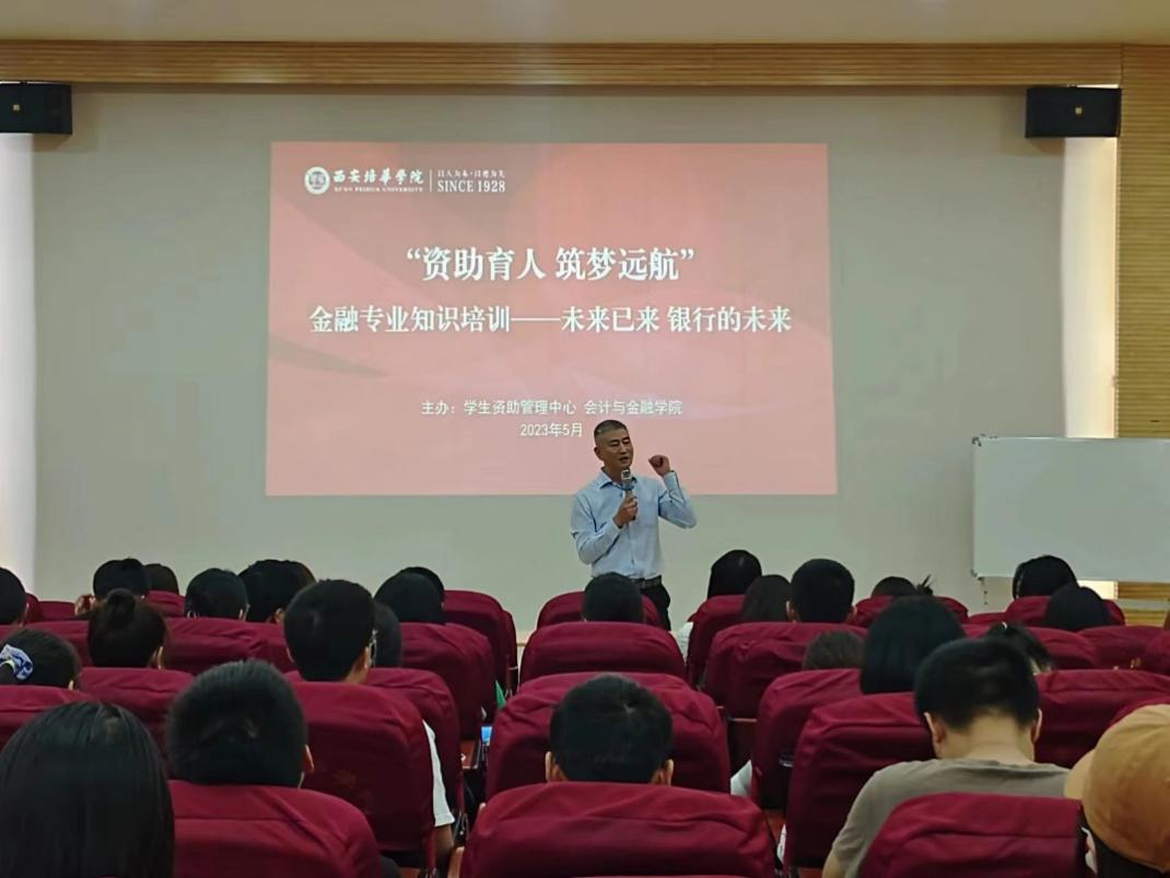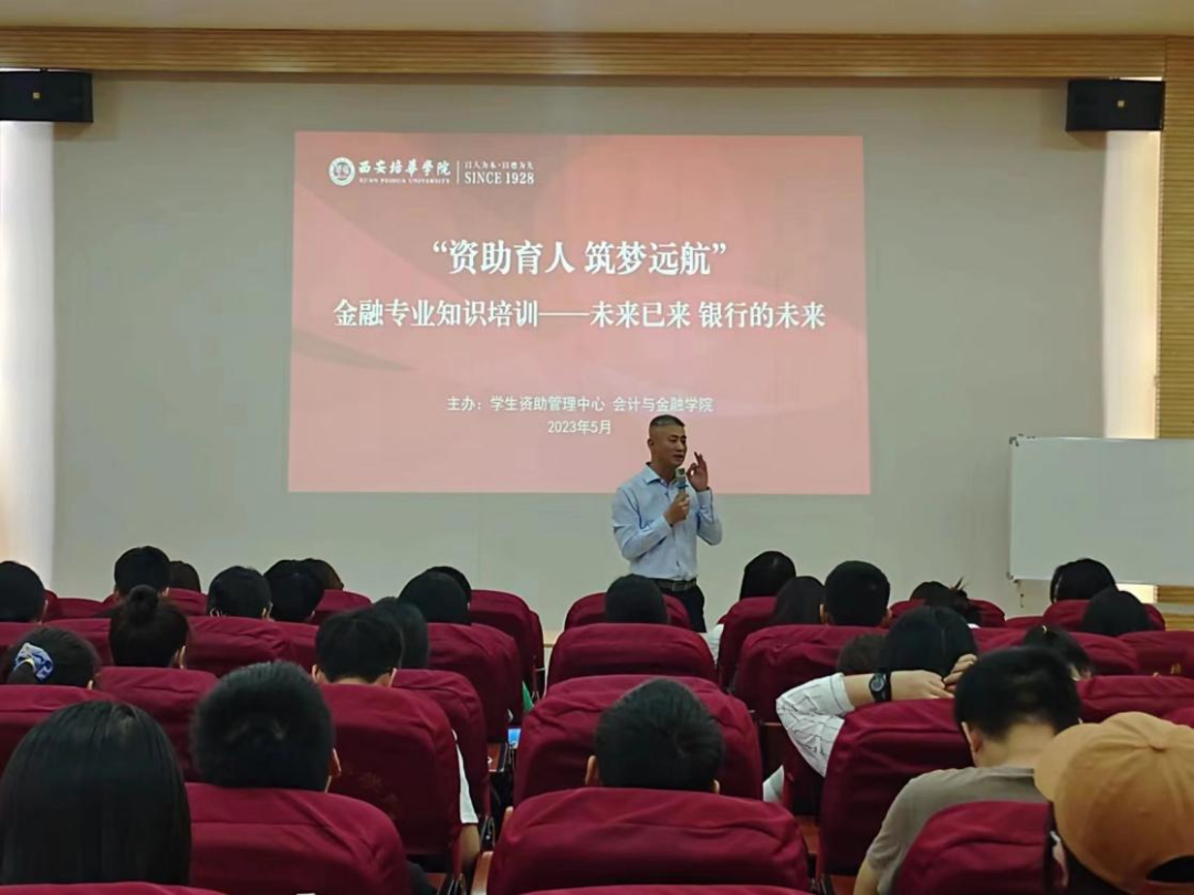 为了提高同学们对专业知识的兴趣、强化专业技能,不断适应金融市场发展,进一步普及金融知识,凸显金融知识的重要性,摆脱金融知识晦涩难懂的固有思想,让同学们更加了解银行和银行的未来发展趋势,会计与金融学院于2023年5月17日下午,在博远楼J202教室,举行了由浦发银行西安分行、学生资助管理中心和会计与金融学院联合举办的“资助育人·筑梦远航“金融专业知识宣讲。