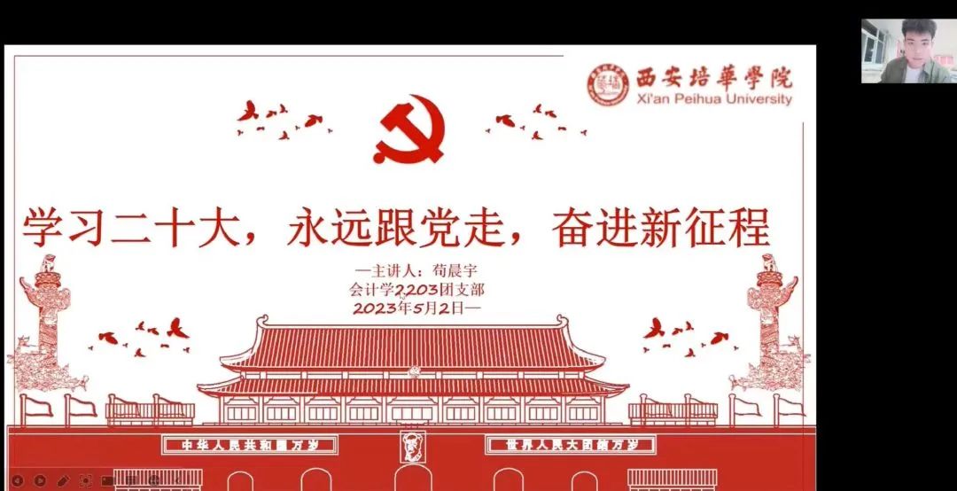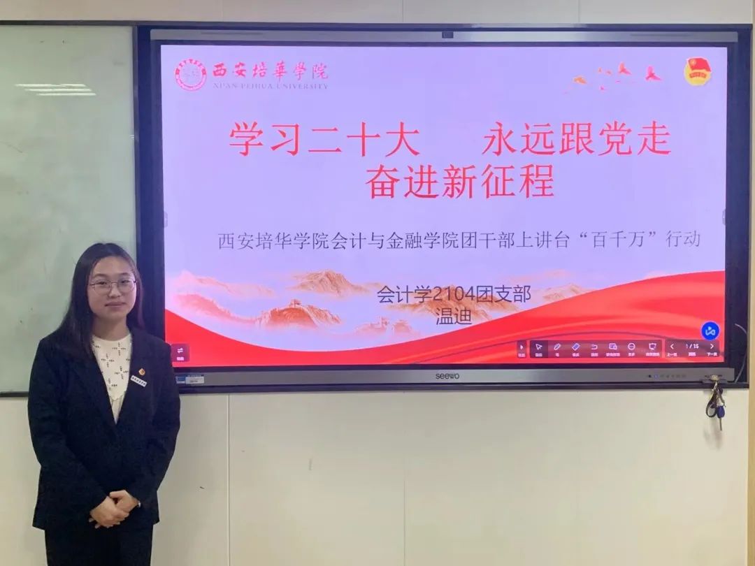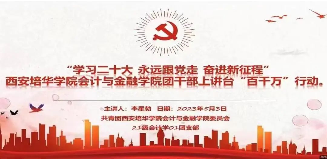 为充分发挥共青团在青年学生思想引领中的作用,提升团干部做青年学生思想引领工作的能力和水平,扎实推进会计与金融学院团干部的党史学习教育,强化团组织队伍建设,落实“团干部上讲台百千万行动”工作要求,共青团西安培华学院会计与金融学院委员会开展“团干部上讲台百千万行动”微团课活动。旨在引导广大青年学生不断增强永远跟党走的理想信念,以青春奋进的姿态投身于党和国家的发展建设中去。下面就让我们来看看各团支部所开展的微团课活动吧!