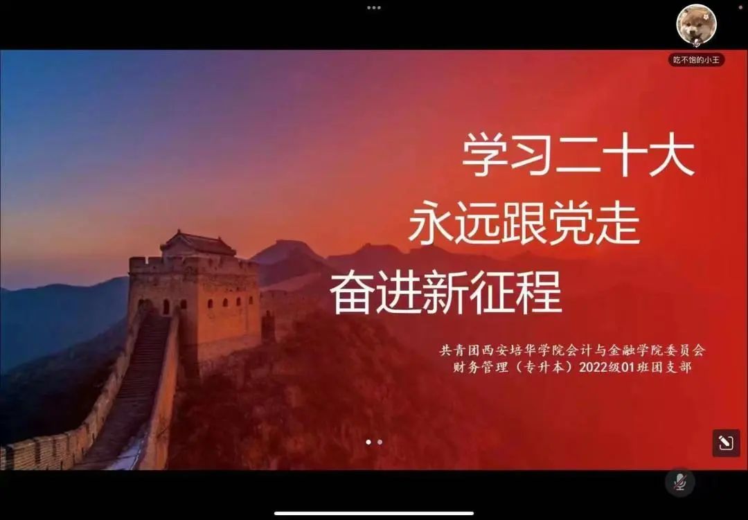 本次微团课活动带领大家重温了党的二十大会议精神。学习强调中国共产主义青年团走过了百年征程,一代代青年为革命理想、为社会主义建设、为祖国繁荣富强挥洒汗水、真诚奉献。作为新时代青年团员要坚定不移紧跟党走,坚定理想信念,志存高远,发扬永久奋斗的光荣传统,用青春创造未来,用青春奋斗贡献中华民族伟大复兴事!