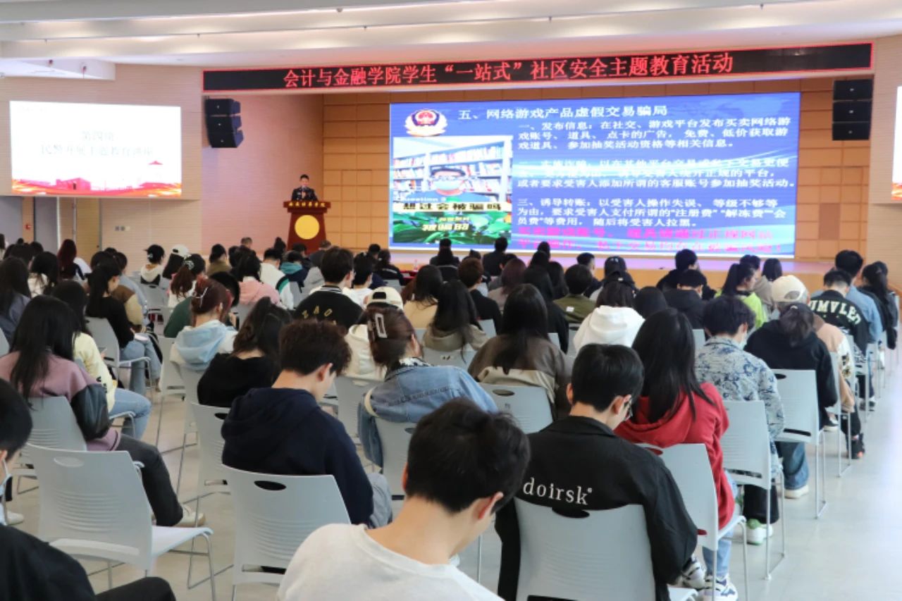 为进一步加强学院“一站式”学生社区建设,探索社区综合管理模式,持续深化教育教学改革,以服务学生在课堂之外的成长成才目的,完善网格化管理机制,将“一站式”学生社区建设成为党建的前沿阵地、“三全育人”的实践园地、平安校园的样板高地,切实提高学生们的防骗反诈意识和防火防盗安全意识,会计与金融学院联合西安市公安局长安分局常宁派出所开展了“民警进社区、平安进校园”安全主题教育活动。