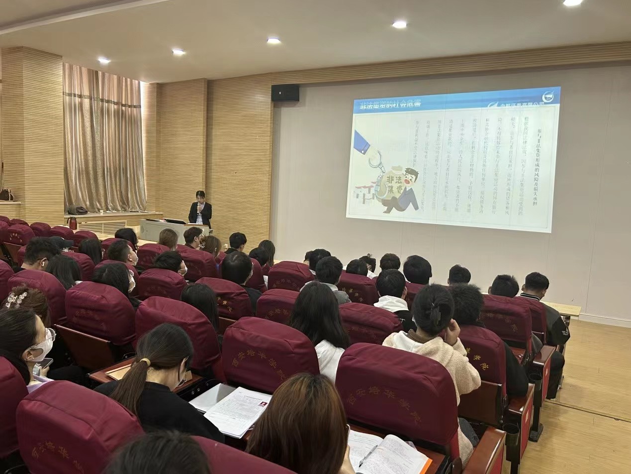 互动环节结束后,刘祎老师围绕金融基础知识普及以及金融风险防范主题为同学们做了精彩演讲,刘祎老师谈到,大学生由于因缺乏社会经验,辨别能力相对较弱,加上欠缺基础金融知识和风险责任意识,近年来已经成为校园贷、套路贷等电信网络诈骗的主要目标,许多大学生特别是新生个人财产遭受严重损失。因此在校大学生一直是我们金融教育关注的重点人群,并以此向同学们普及了金融知识、如何辨别非法金融活动。同学们都感到受益良多。
