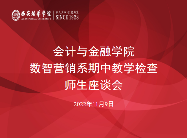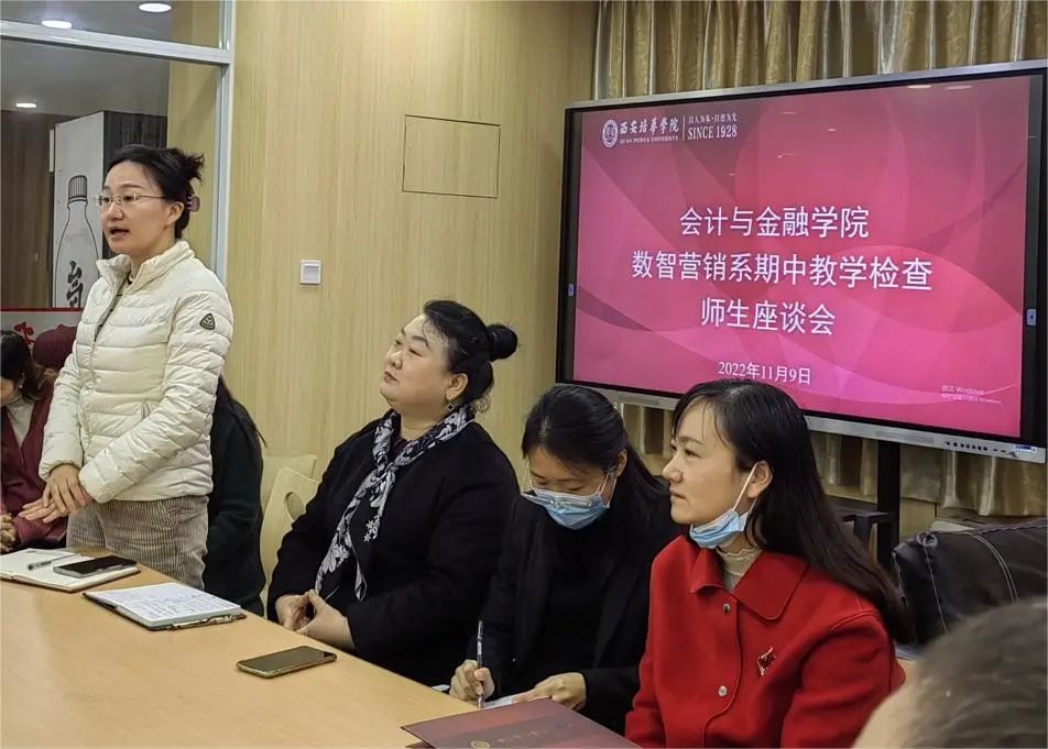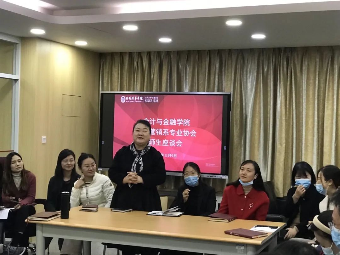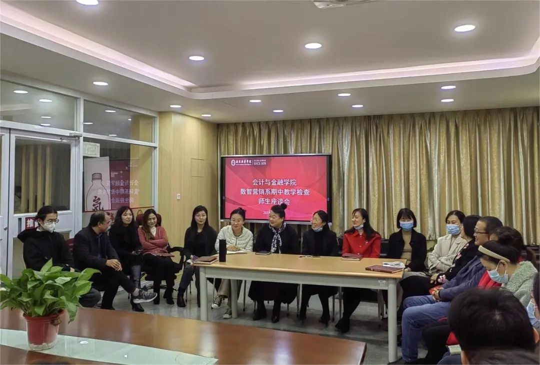 为了解本学期教学动态,监控教学质量和教学计划的有效运行,为后期教学工作提供依据和方向,保证专业教学目标的达成度。2022年11月9日中午会计与金融学院数智营销系在产业经济研究中心召开师生座谈会,会议由市场营销专业吴振荣老师主持,数智营销系全体教师及市场营销、电子商务专业部分学生代表参加了本次会议。市场营销和电子商务协会负责人就专业协会发展在会上做了交流探讨。