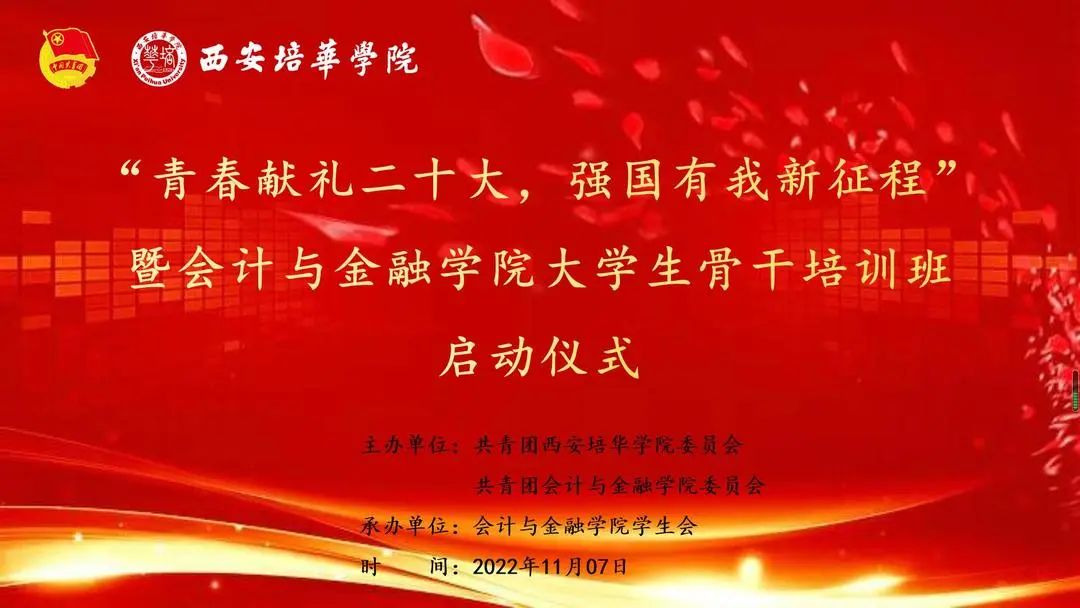 会计与金融学院于2022年11月7日12:20在图书馆报告厅顺利举办了大学生骨干培训班启动仪式。