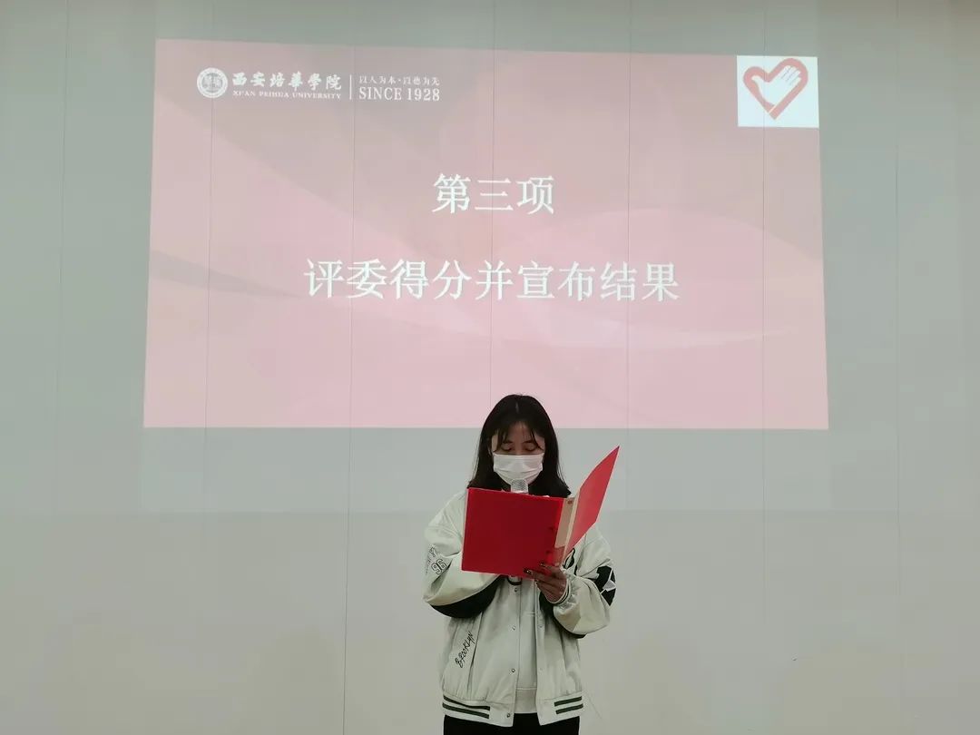 本次演讲比赛的到场嘉宾分别为:学生会执行主席吴冰,学生会主席团成员马诗漫,青年志愿者协会会长宋昱洁及各部门部长。