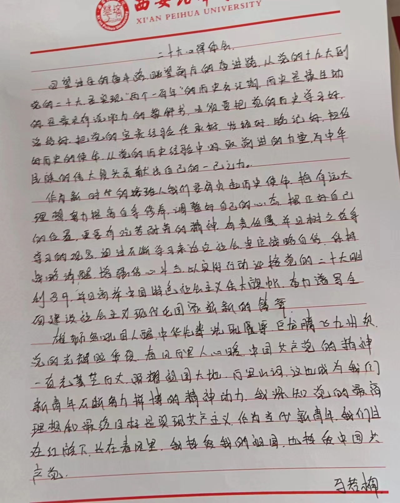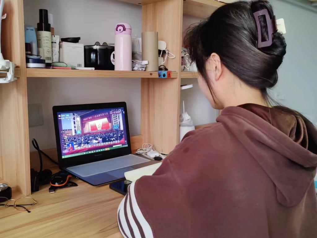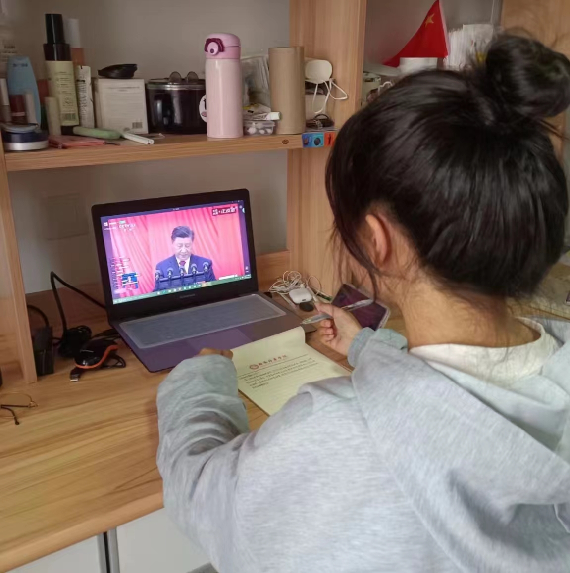 视频中的学子们坚定理想信念、牢记初心使命,展现认真履职尽责、主动担当作为,以昂扬向上的精气神、以一往无前的奋斗姿态和优异的学习成绩向党的二十大献礼。