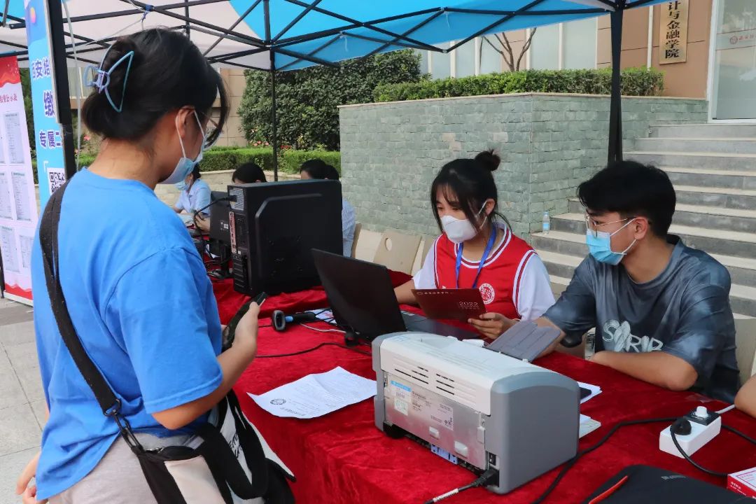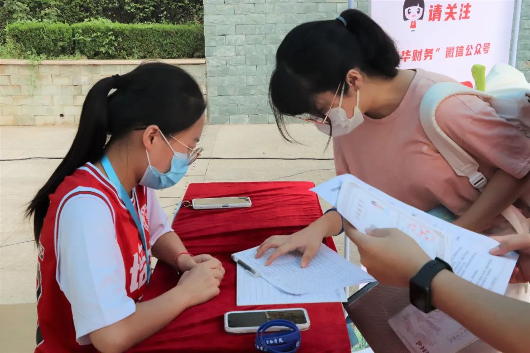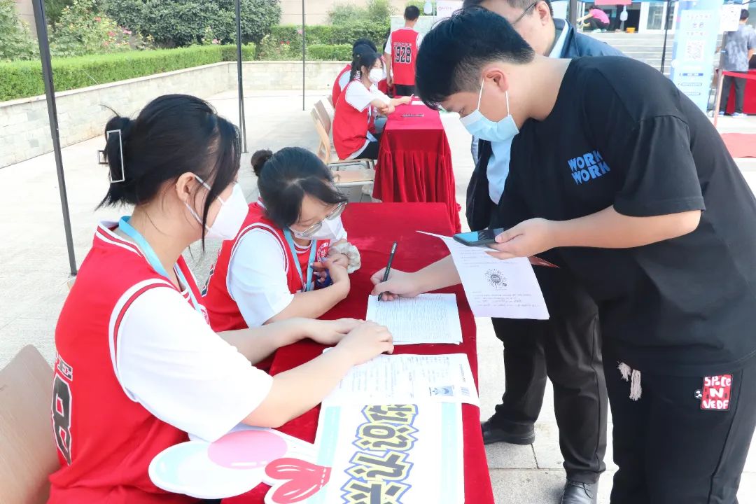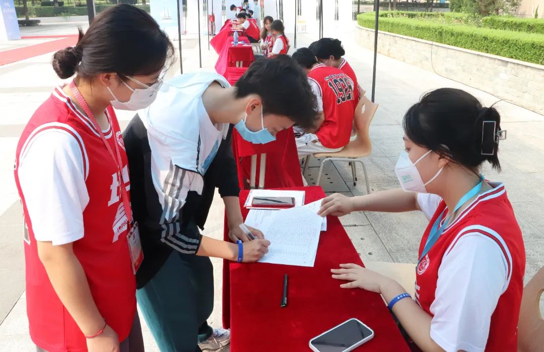 引人注目的“爱心红”,用心的引导着初次到来的新生,耐心温柔的帮助新生完成报道流程。