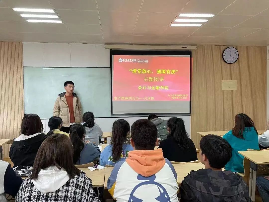 在支部成员的不断努力之下,班团的建设工作取得了成效,支部荣获会计与金融学院一星团支部的称号,在“请党放心,强国有我”优秀主题团日活动评选中获得优秀奖,同时支部成员也在各项比赛中展现自己的风采,实现了班团建设一体化。