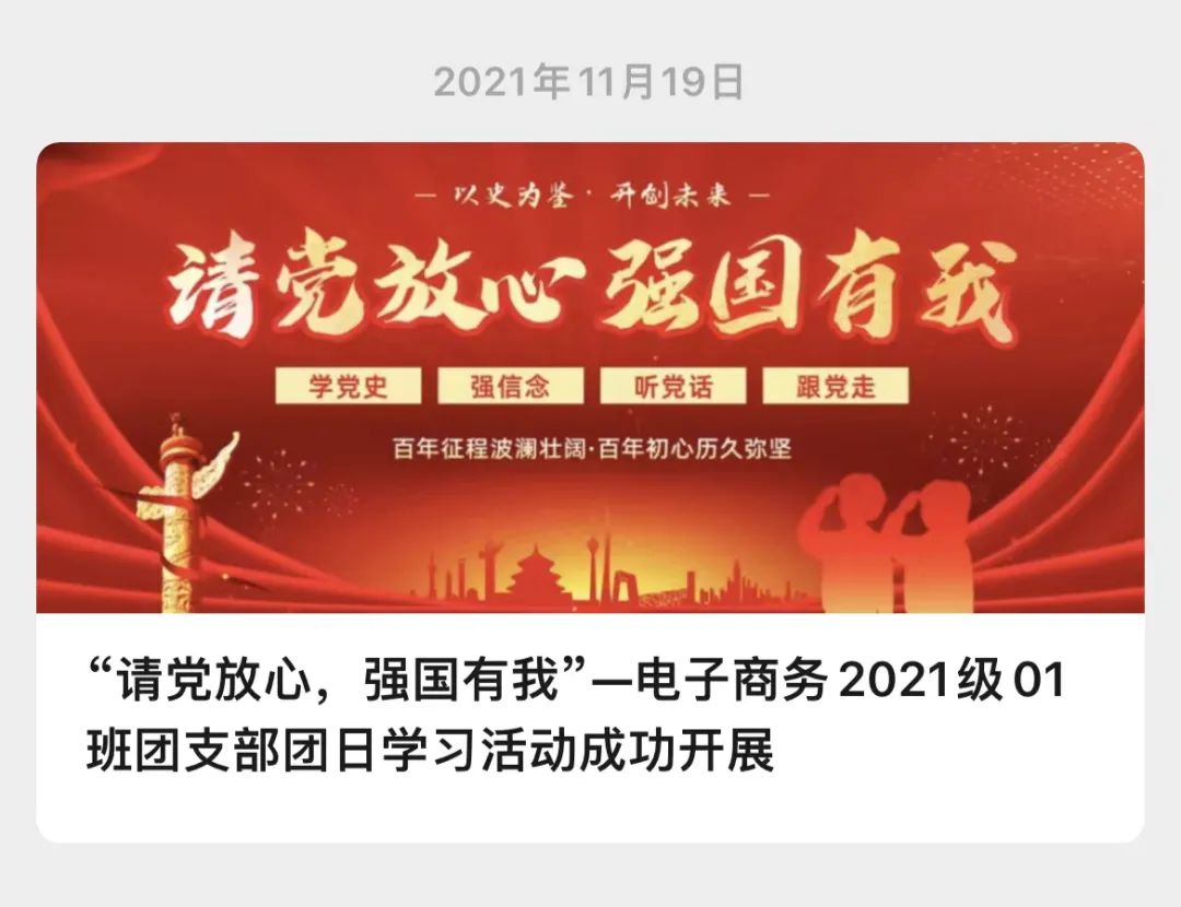 西安培华学院会计与金融学院电子商务2101团支部成立于2021年9月,目前共有成员31人,其中团员23人,青年8人,入党积极分子11人,入团积极分子8人。