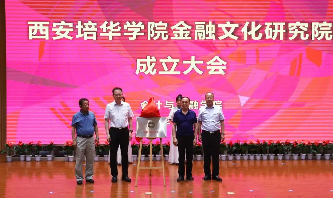 西安地方金融协会会长王西省、创会副会长常西岭,西安培华学院理事长姜波博士、党委书记罗新远教授为“西安培华学院金融文化研究院”揭牌