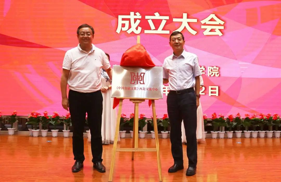 原中国长城资产陕西分公司总经理李龙、《城市金融报》总编吴延军为“《中国金融文化》西北交流中心”揭牌