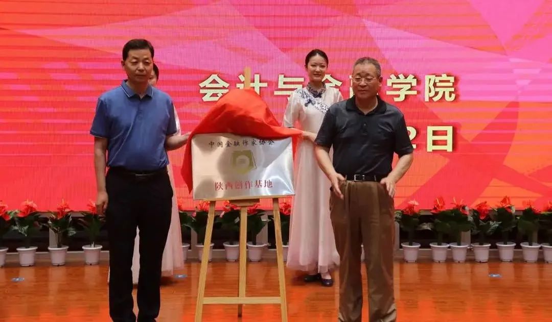 陕西金融文联常务副主席赵乾军、陕西金融作协主席杨军为“中国金融作家协会陕西创作基地”揭牌