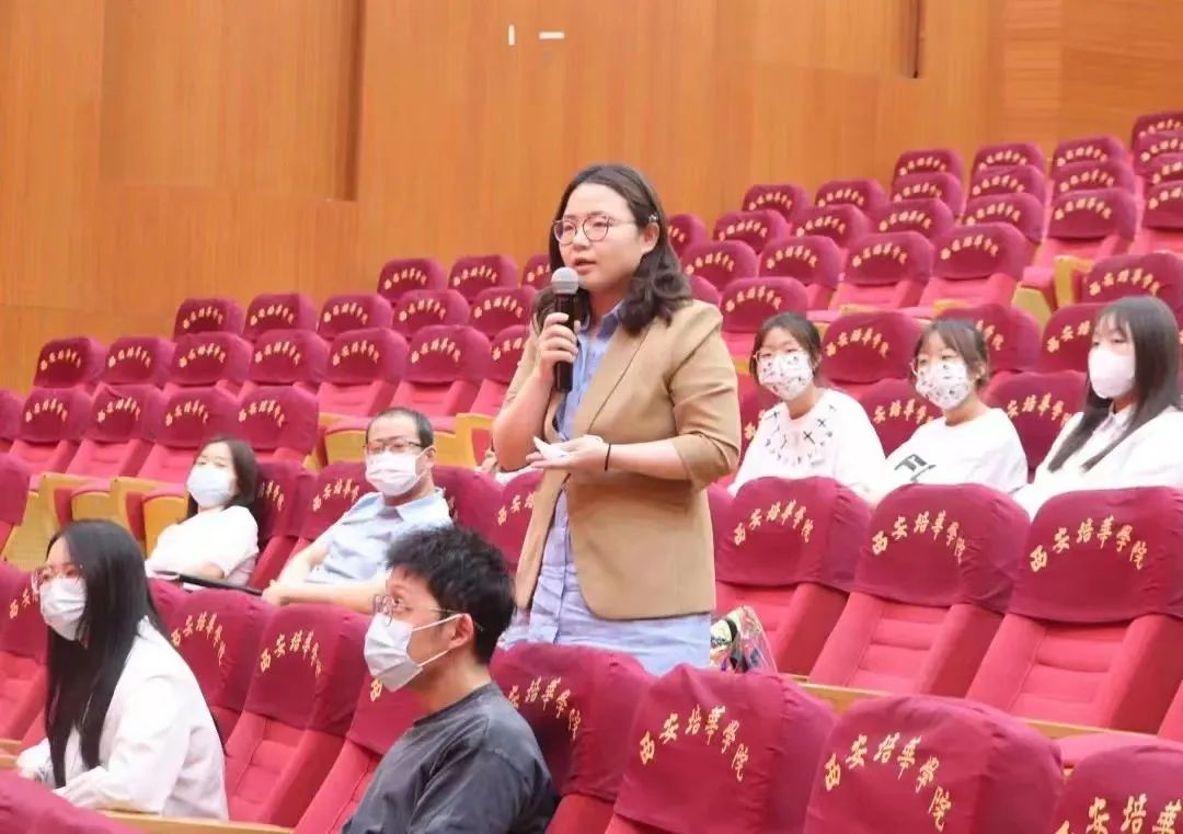在大会的提问环节,教师代表向王海峰老师提出了“我曾经也参加过三下乡活动,现在是我们会计与金融学院的一位老师,您认为如何将三下乡的成果和数字化、经济化结合起来呢?”的问题。